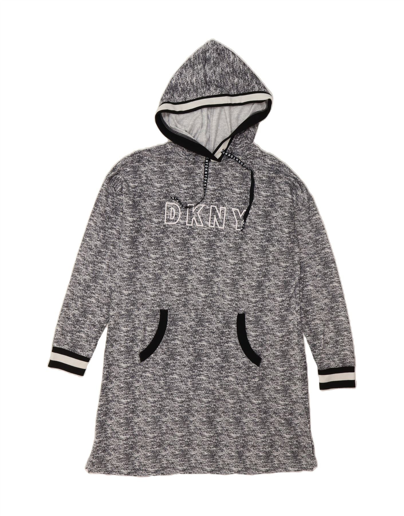 DKNY Womens Graphic Hoodie Dress UK 10 Small Grey Flecked Polyester