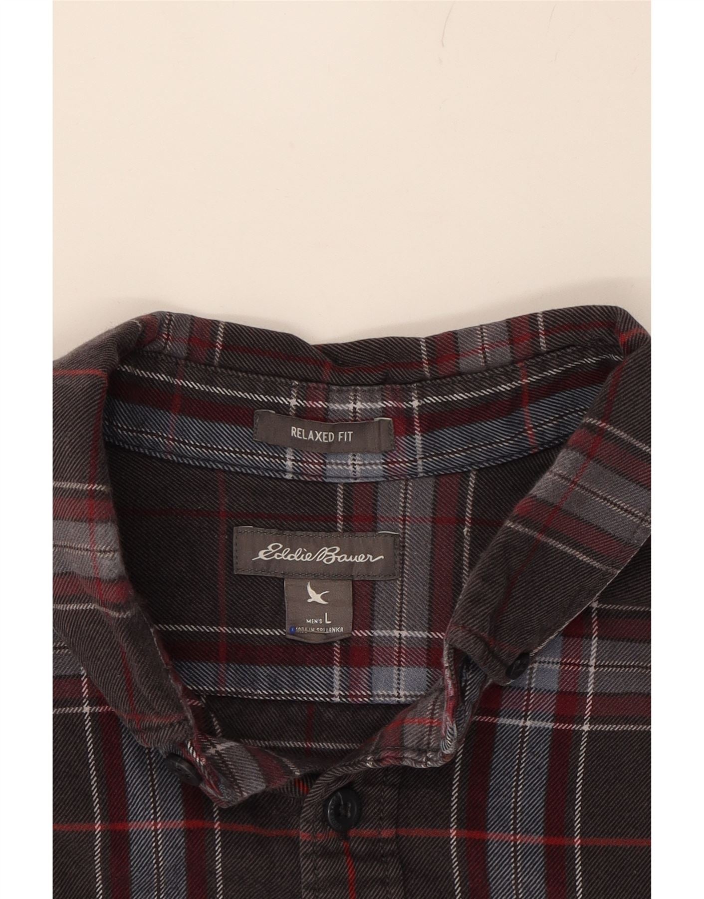 EDDIE BAUER Mens Relaxed Fit Flannel Shirt Large Grey Check Cotton