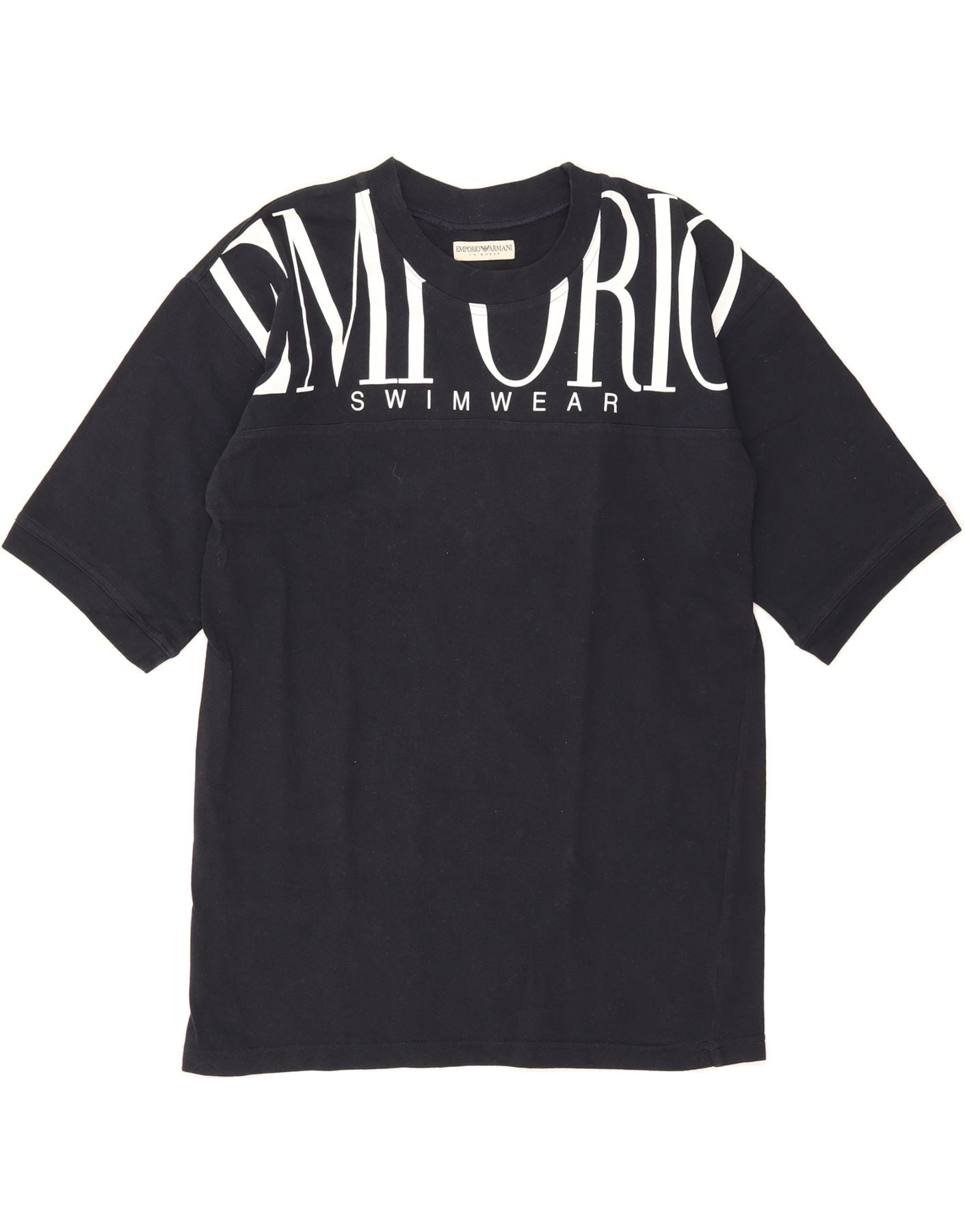EMPORIO ARMANI Mens Graphic T-Shirt Top Medium Navy Blue Cotton