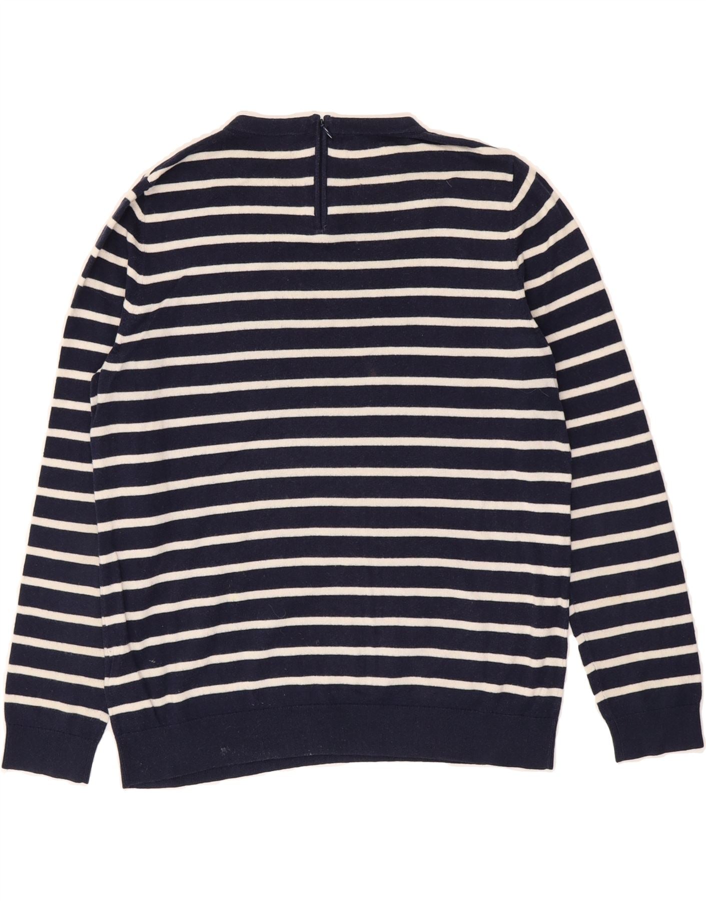 HOBBS Womens Crew Neck Jumper Sweater UK 16 Large Navy Blue Striped Cotton