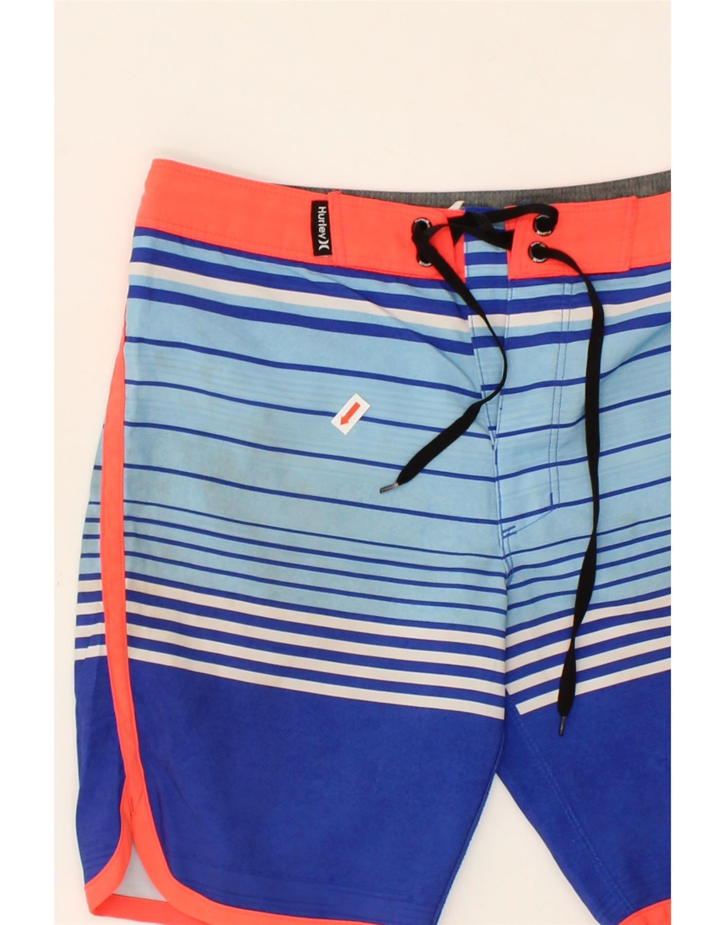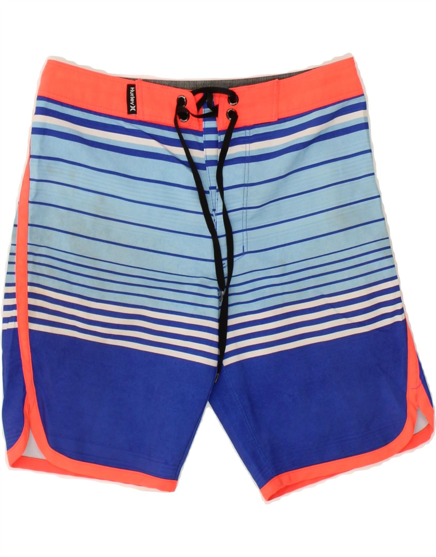 HURLEY Boys Swimming Shorts 7-8 Years XS Blue Striped Polyester