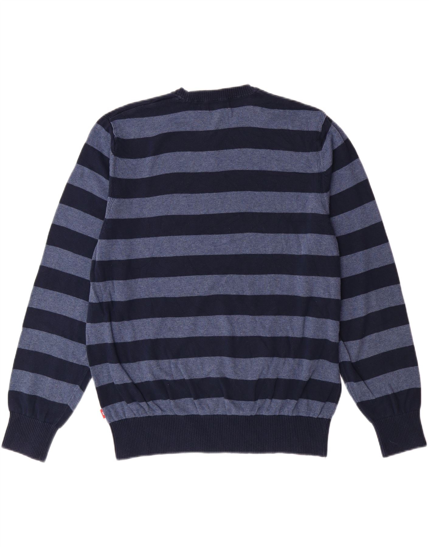 IZOD Mens Crew Neck Jumper Sweater Medium Blue Striped Cotton