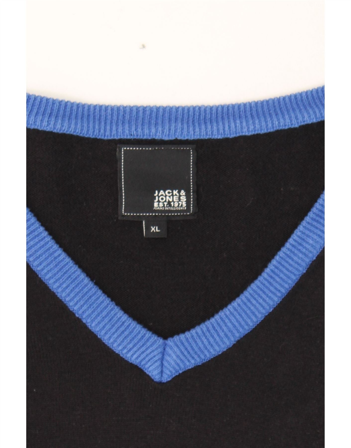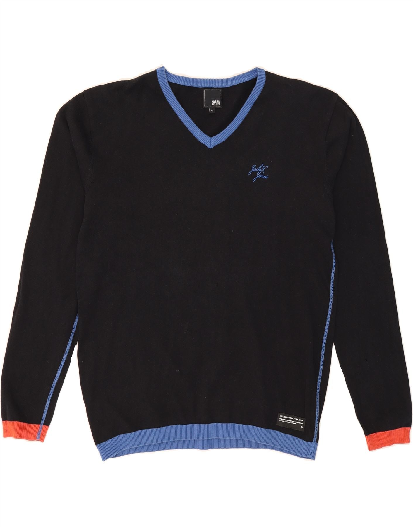 JACK & JONES Mens V-Neck Jumper Sweater XL Black Cotton