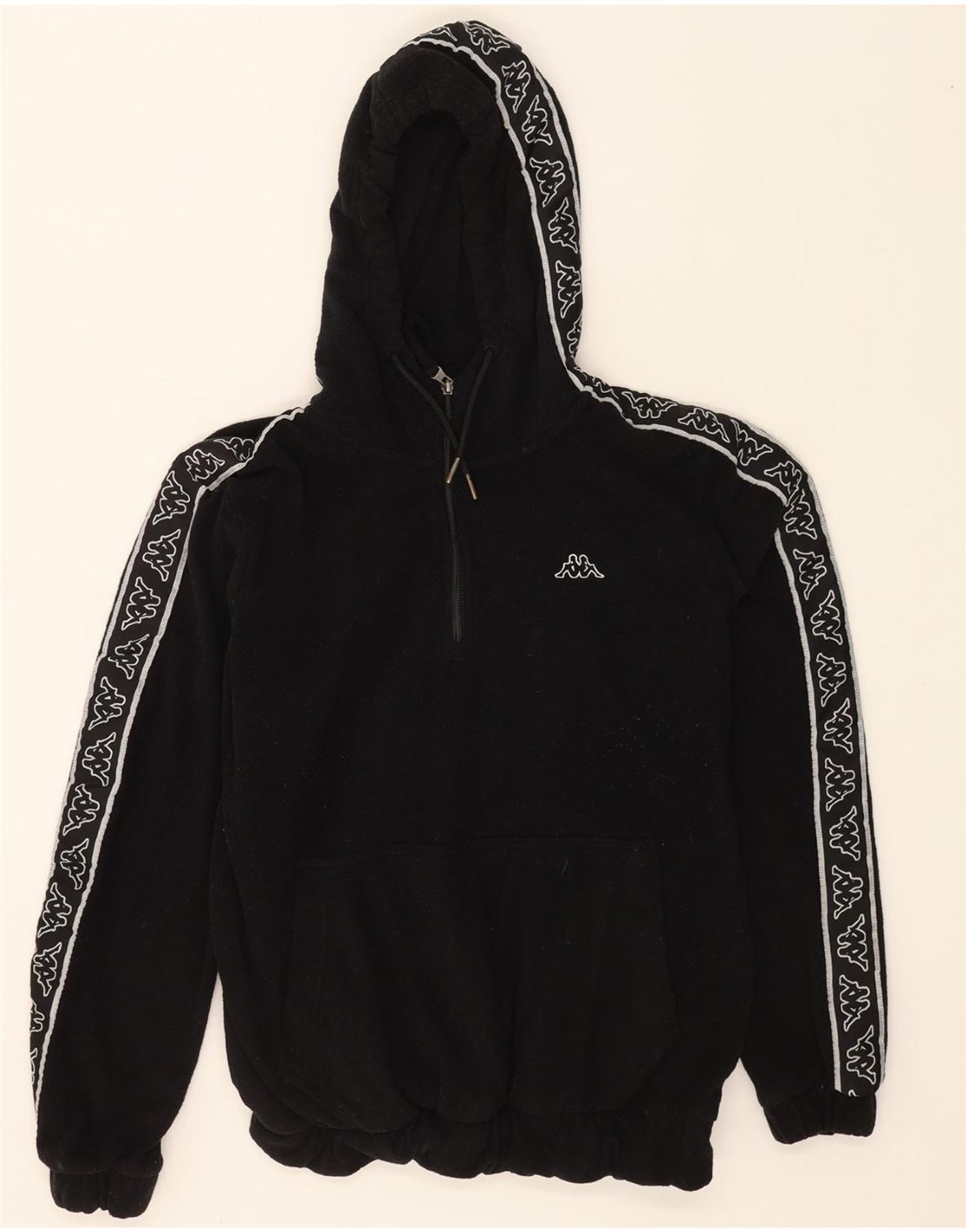 KAPPA Womens Graphic Zip Neck Fleece Jumper UK 14 Medium Black Polyester