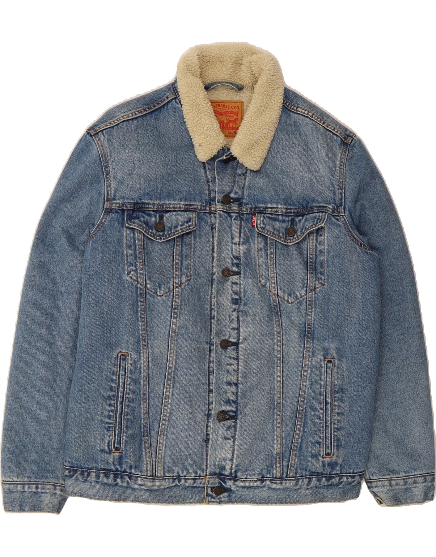 LEVI'S Mens Denim Sherpa Jacket UK 42 XL Blue Cotton