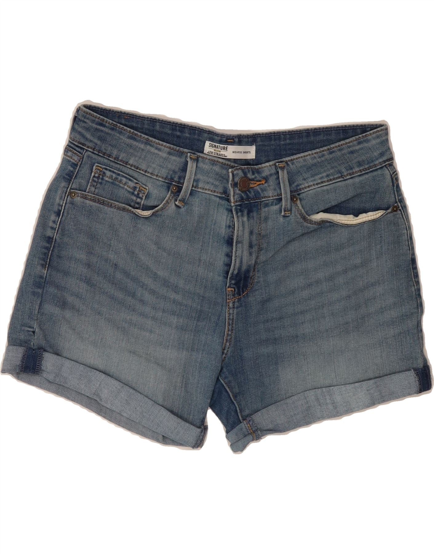 LEVI'S Womens Signature Mid Rise Denim Shorts US 4 Small W27 Blue Cotton