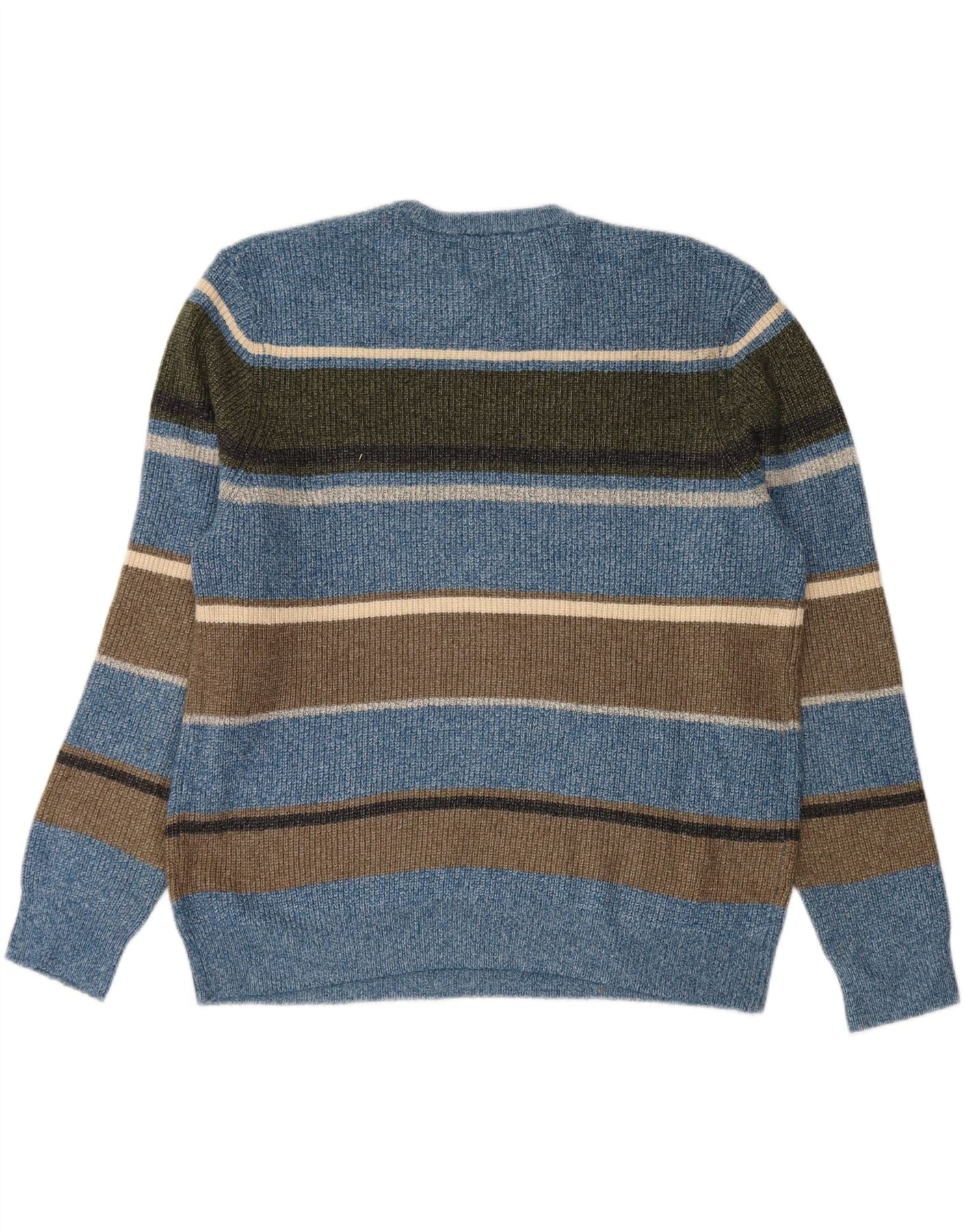 MARKS & SPENCER Mens Crew Neck Jumper Sweater XL Blue Striped Polyamide