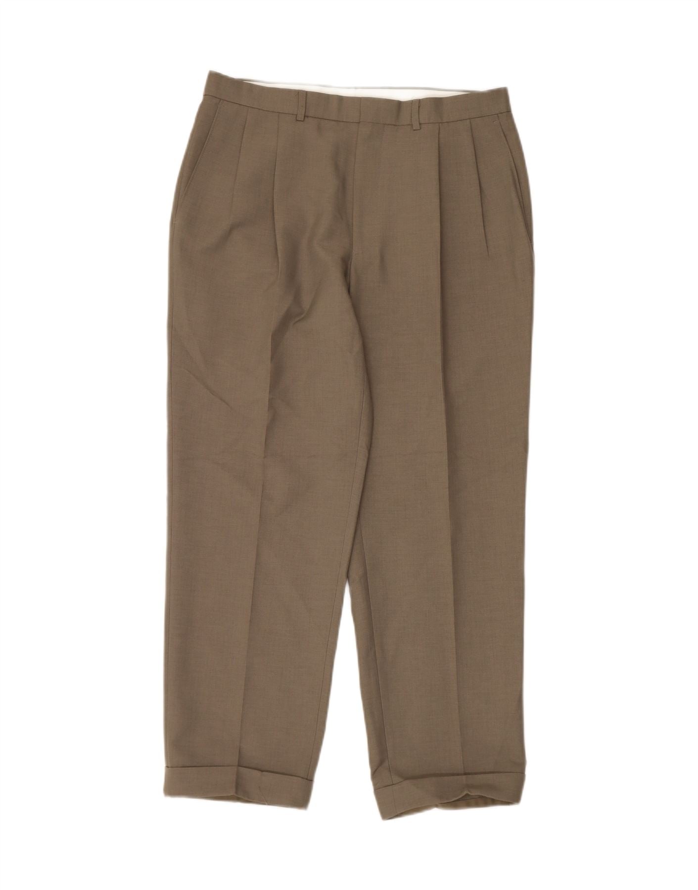MARKS & SPENCER Mens Pegged Suit Trousers W34 L29 Beige Polyester