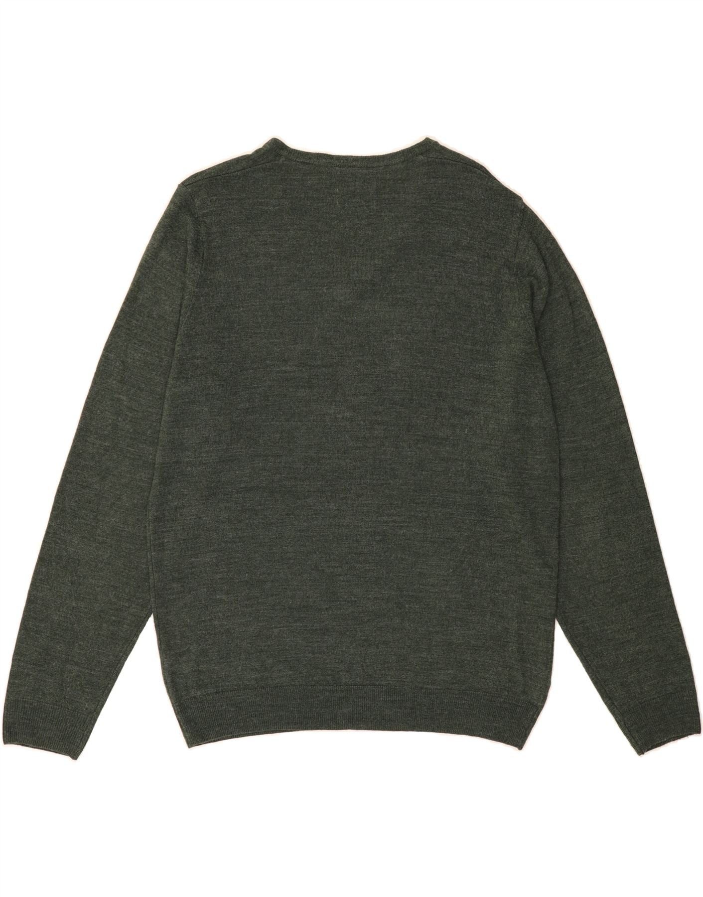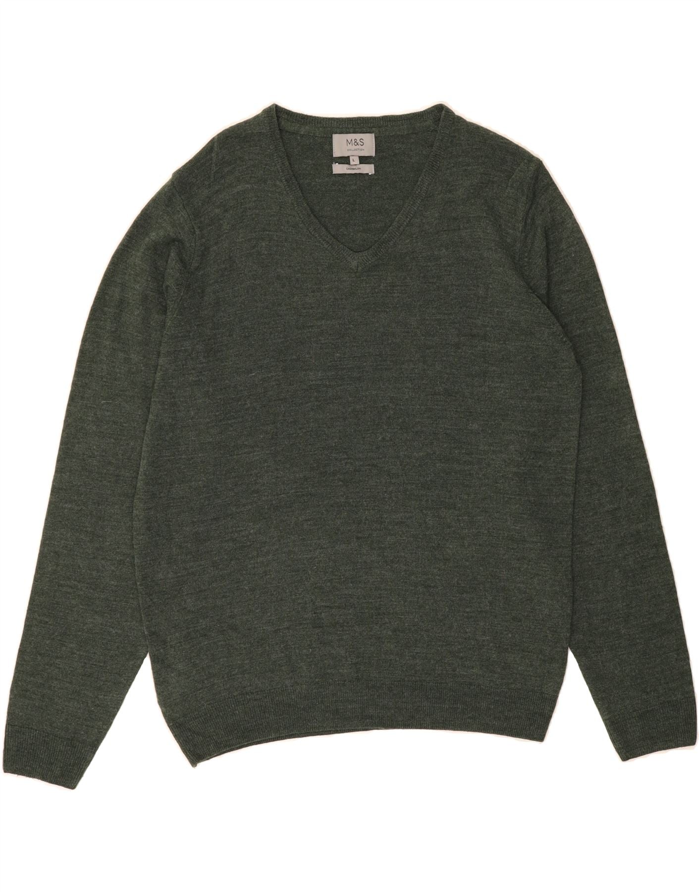 MARKS & SPENCER Mens V-Neck Jumper Sweater Large Green Acrylic