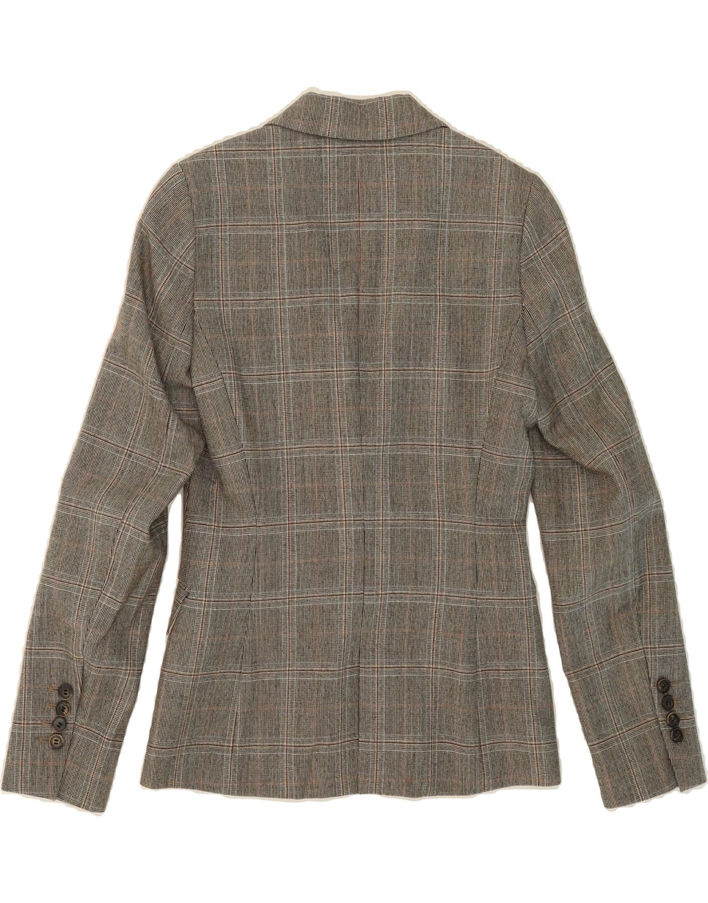 MASSIMO DUTTI Womens 1 Button Blazer Jacket EU 38 Small Grey Check Cotton
