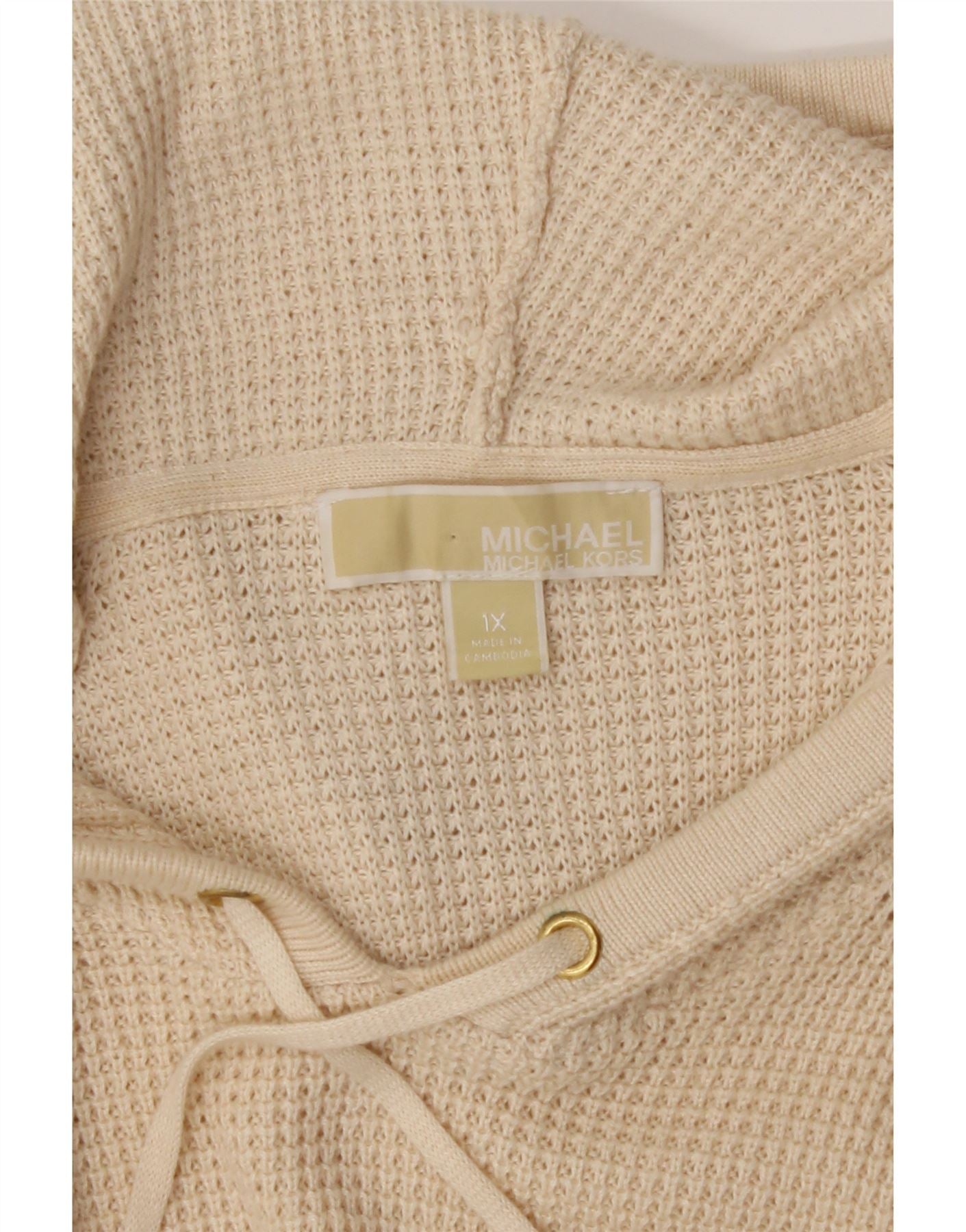 MICHAEL KORS Womens Hooded Jumper Sweater UK 18 XL Beige Cotton
