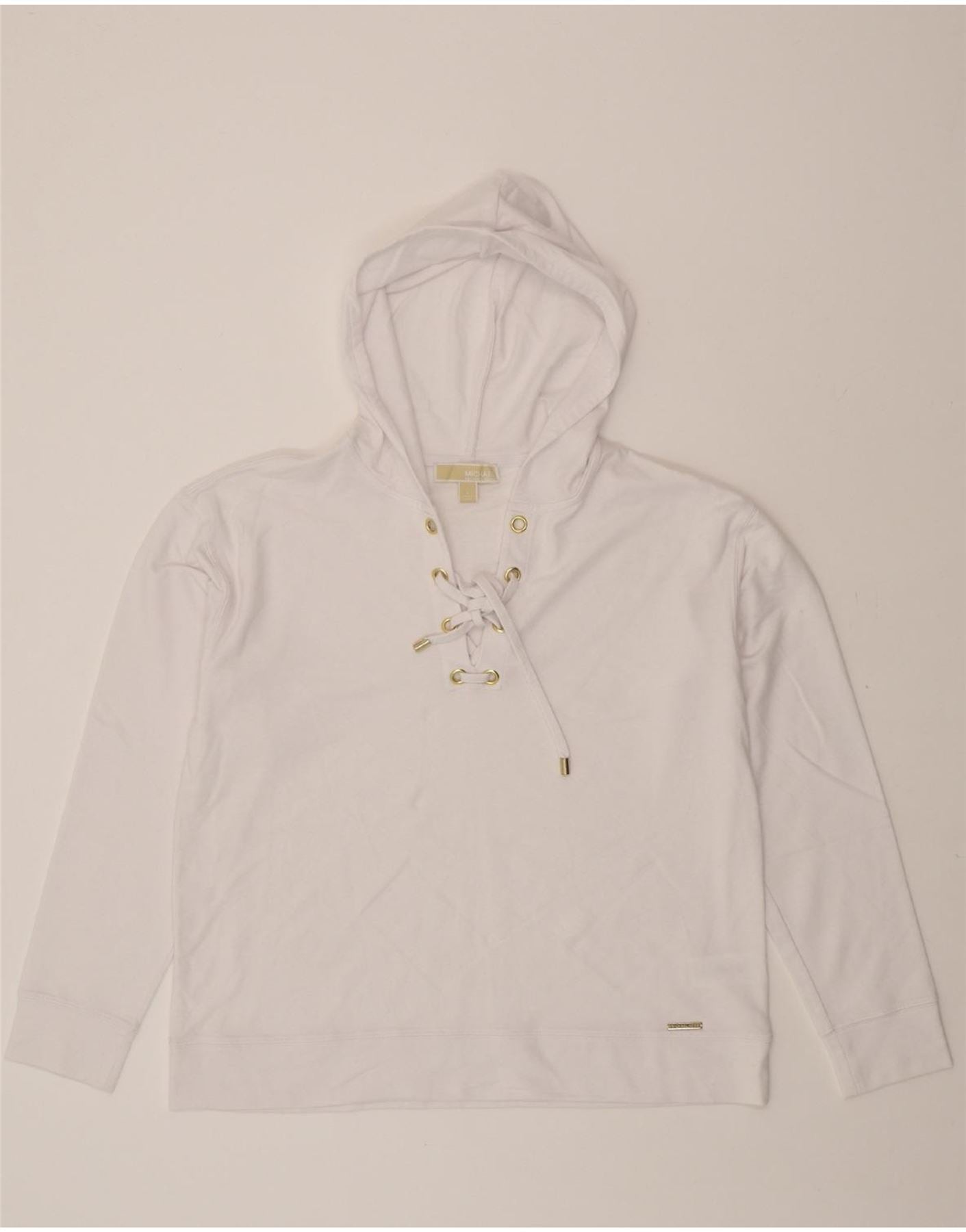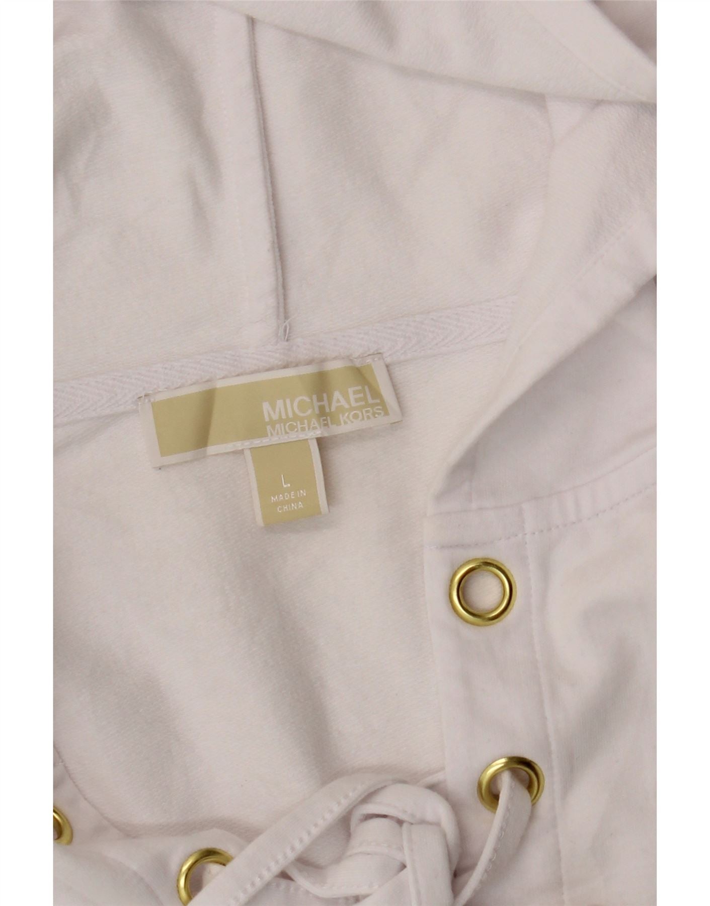 MICHAEL KORS Womens Hoodie Jumper UK 16 Large White Cotton