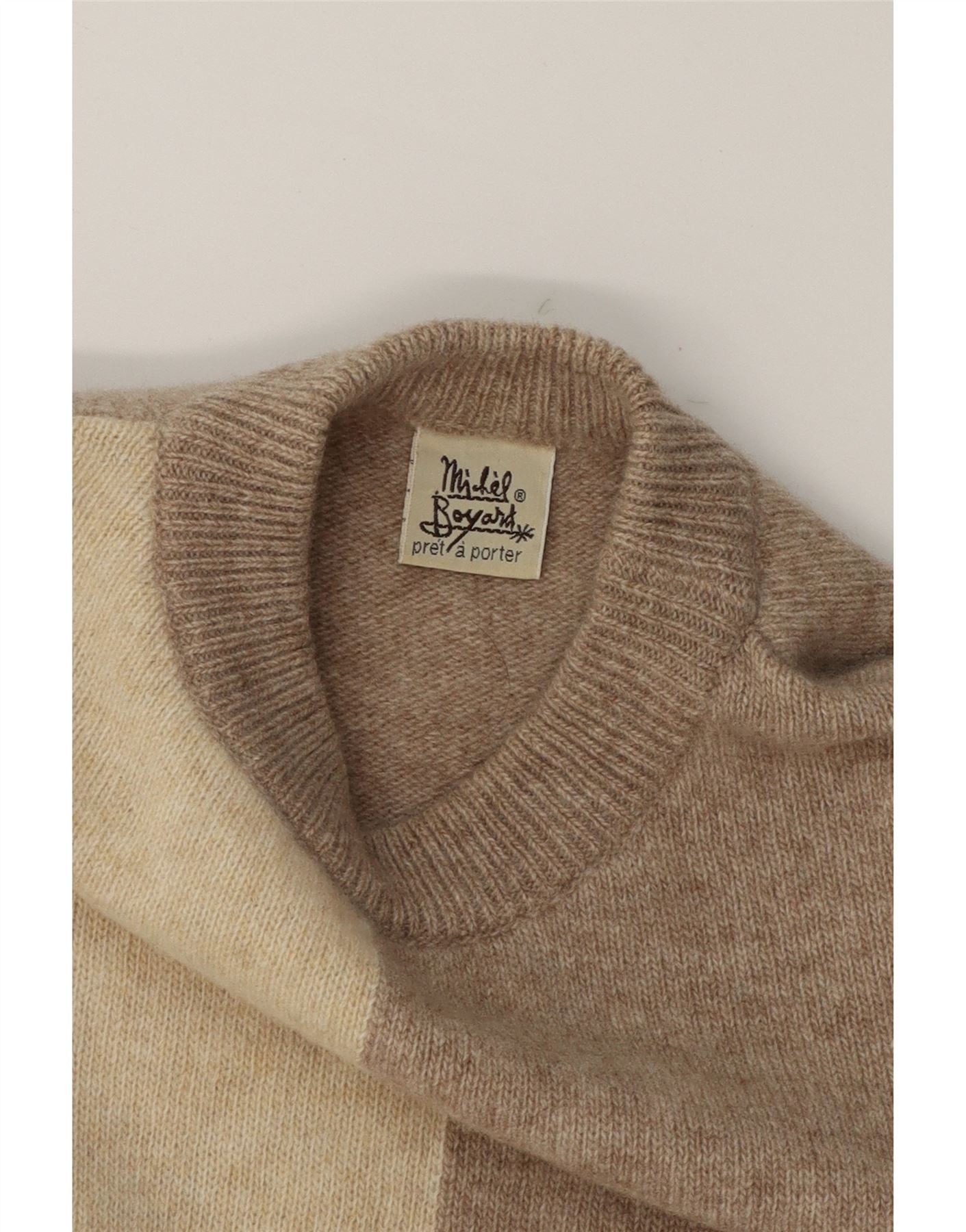 MICHEL BOYARD Womens Crew Neck Jumper Sweater UK 16 Large Grey Colourblock