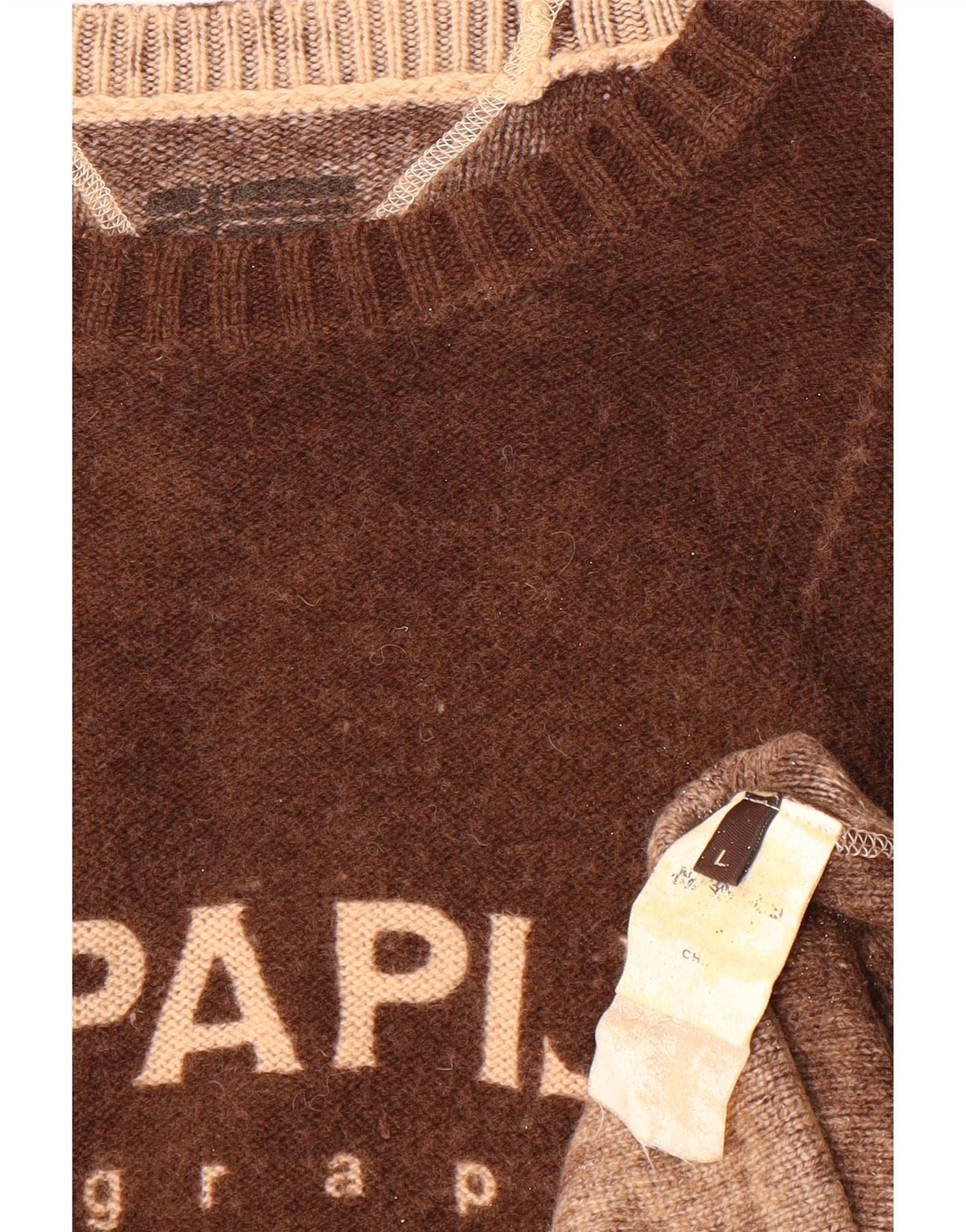 NAPAPIJRI Mens Graphic Boat Neck Jumper Sweater Large Brown