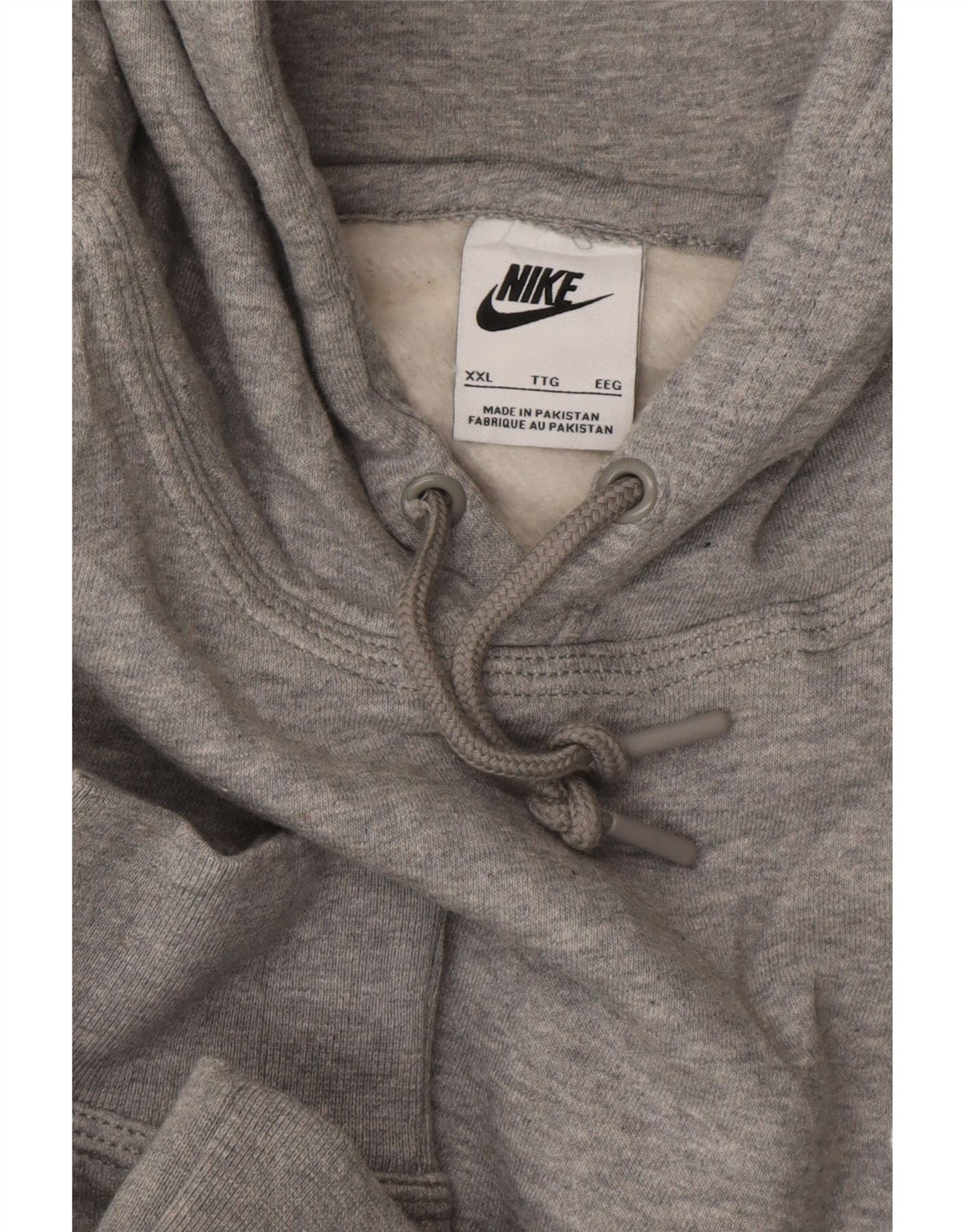 - AI Description: This pre-owned Nike men's pullover hoodie in grey offers a regular fit for comfortable wear. Crafted for sports enthusiasts, it features a hood with drawstring for adjustable coverage and a kangaroo pocket for practicality. The long sleeves and strap accent add to its sporty aesthetic. Ideal for casual or athletic use, this XXL hoodie combines comfort and style effortlessly.