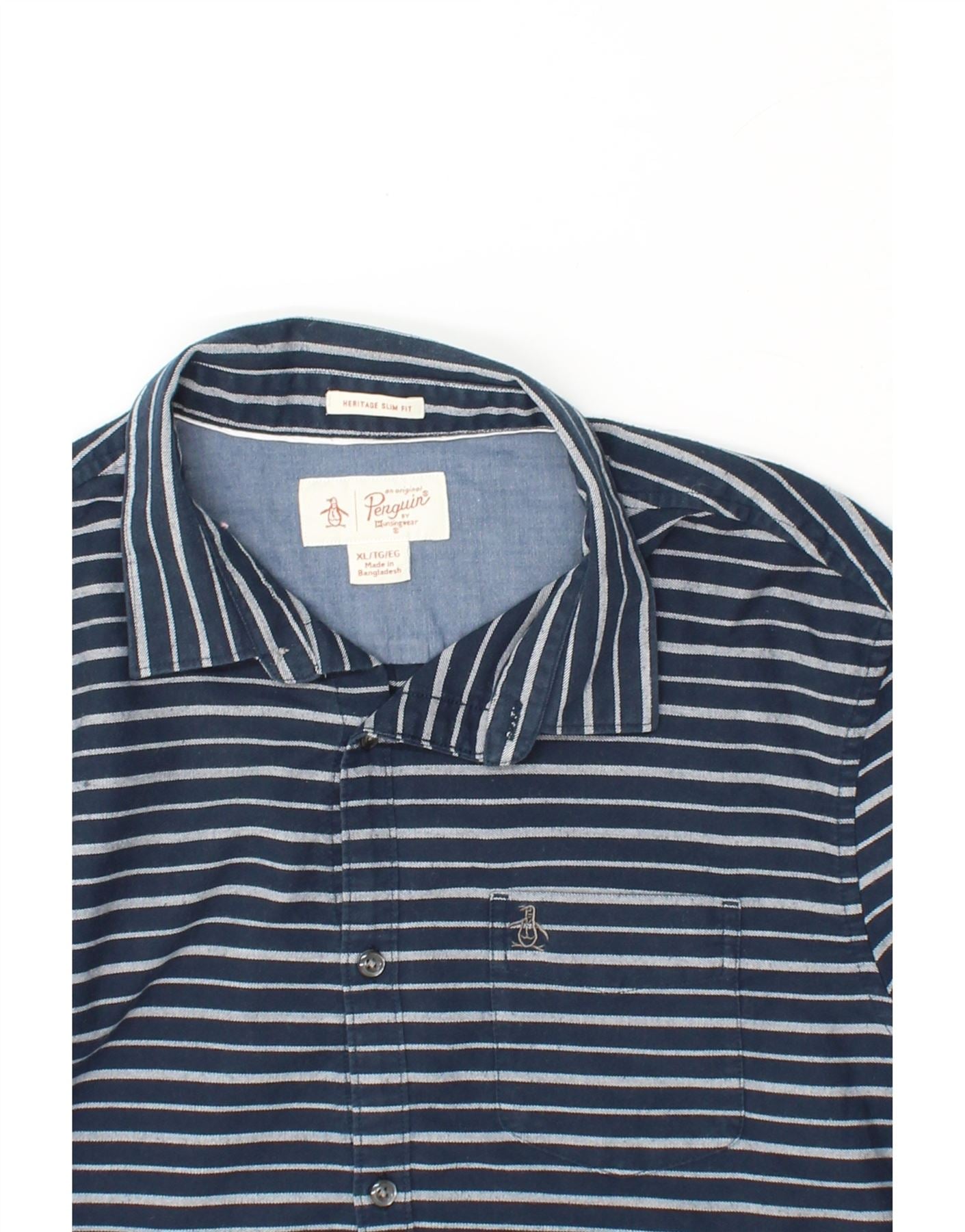 PENGUIN Mens Heritage Slim Fit Shirt XL Navy Blue Striped Cotton