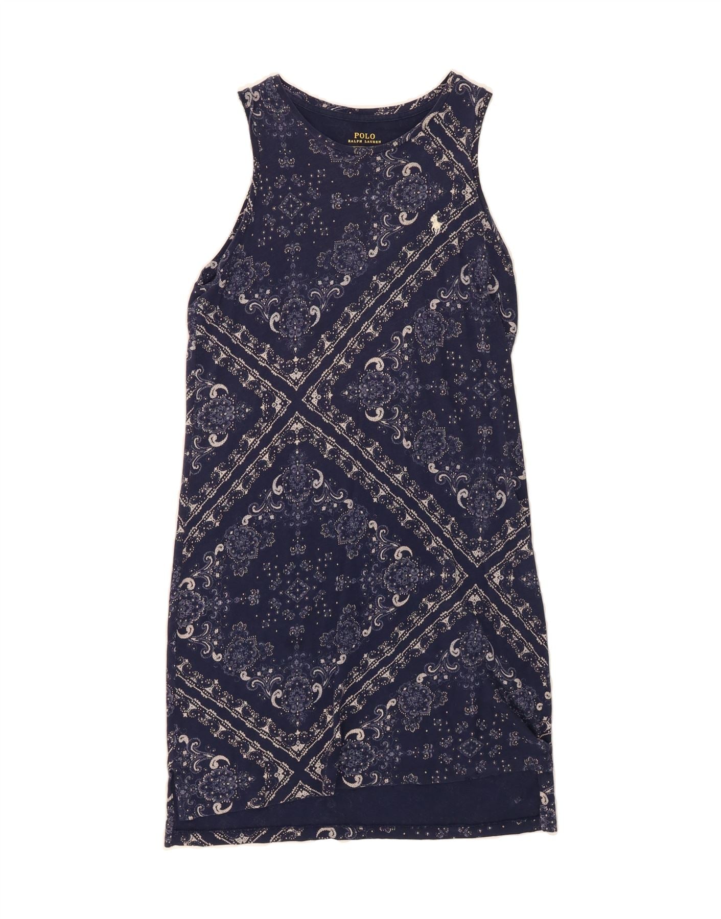 POLO RALPH LAUREN Womens Sheath Dress UK 10 Small Navy Blue Paisley