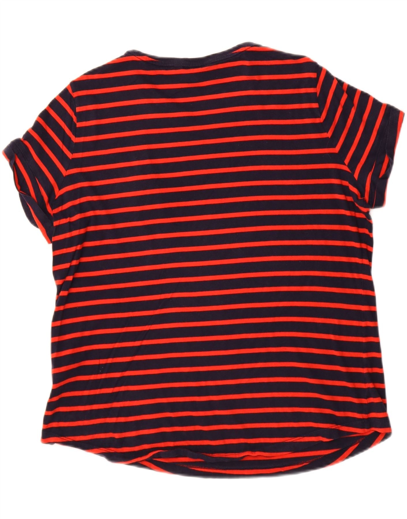 RALPH LAUREN Womens Graphic T-Shirt Top UK 16 Large Navy Blue Striped