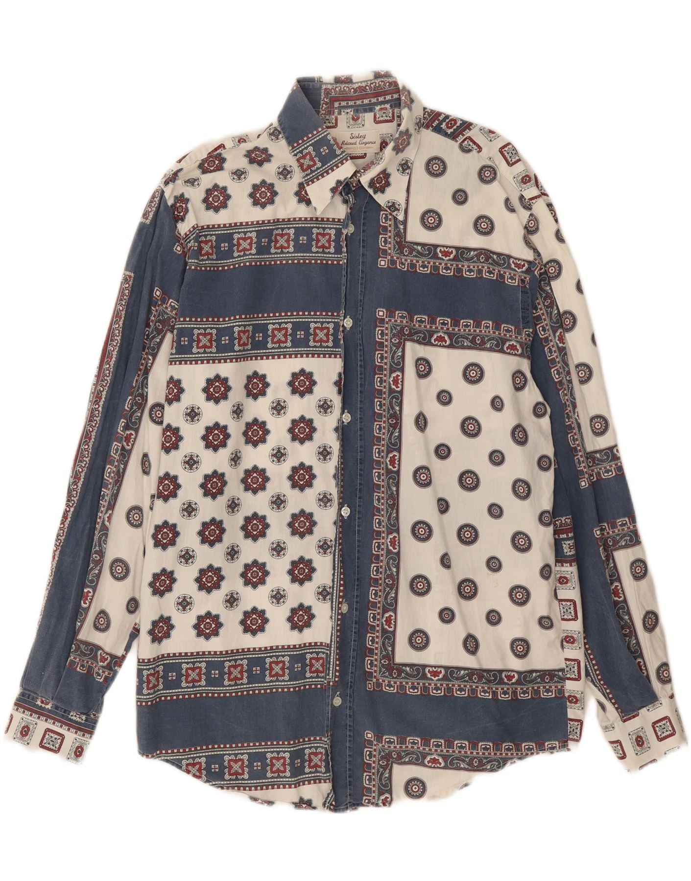 SISLEY Mens Relaxed Elegance Shirt Medium Blue Patchwork Cotton