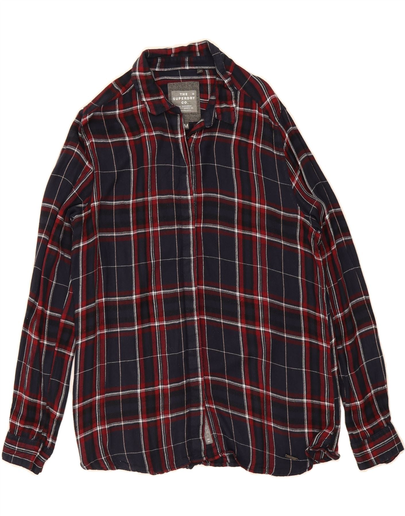 SUPERDRY Womens Flannel Shirt UK 14 Medium Navy Blue Check Viscose