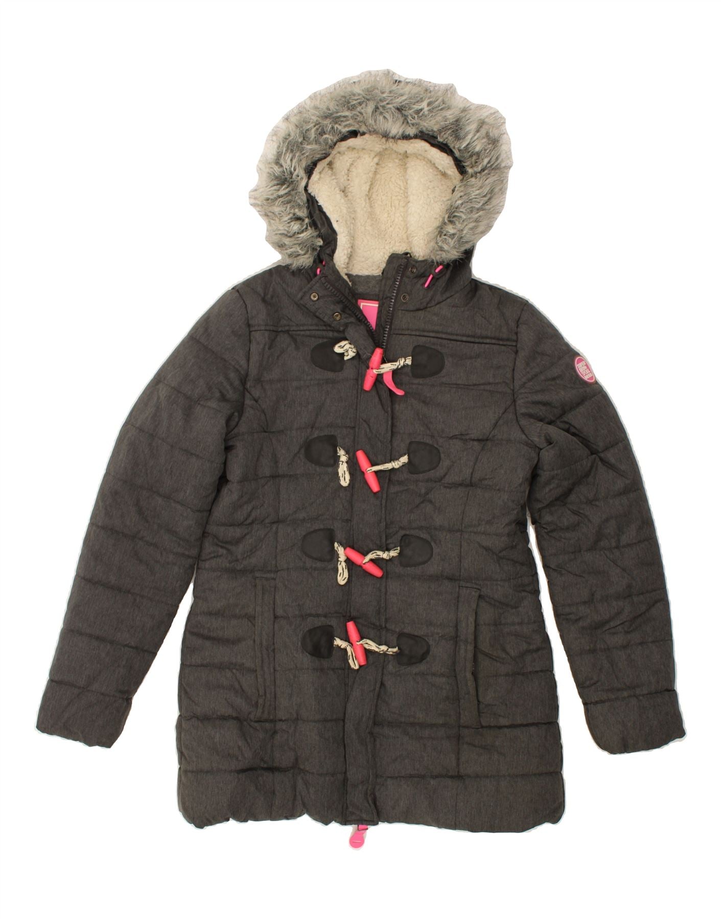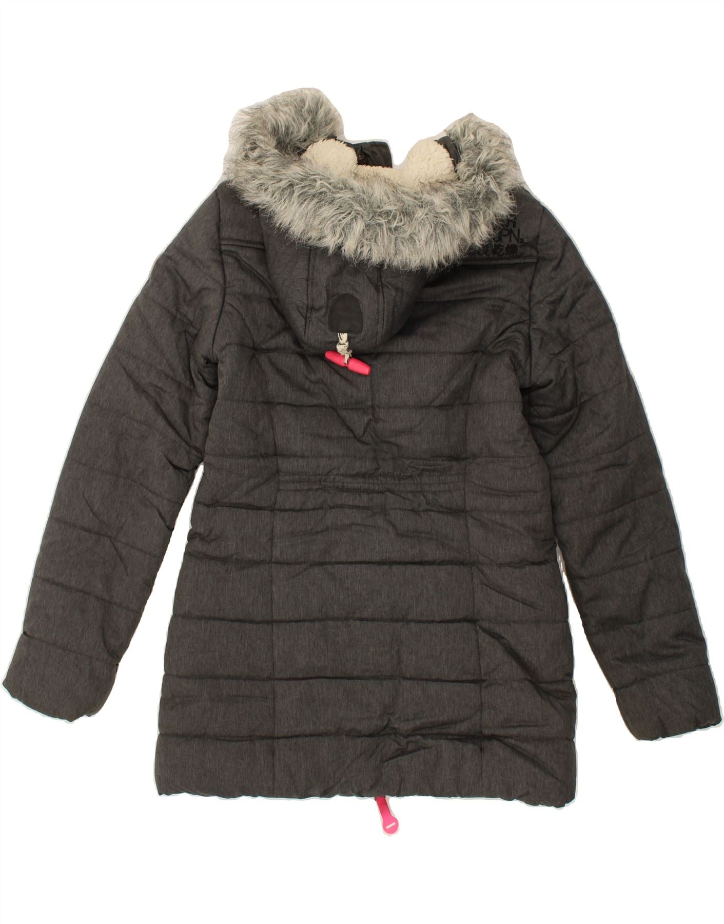 SUPERDRY Womens Hooded Padded Jacket UK 12 Medium Grey Polyester