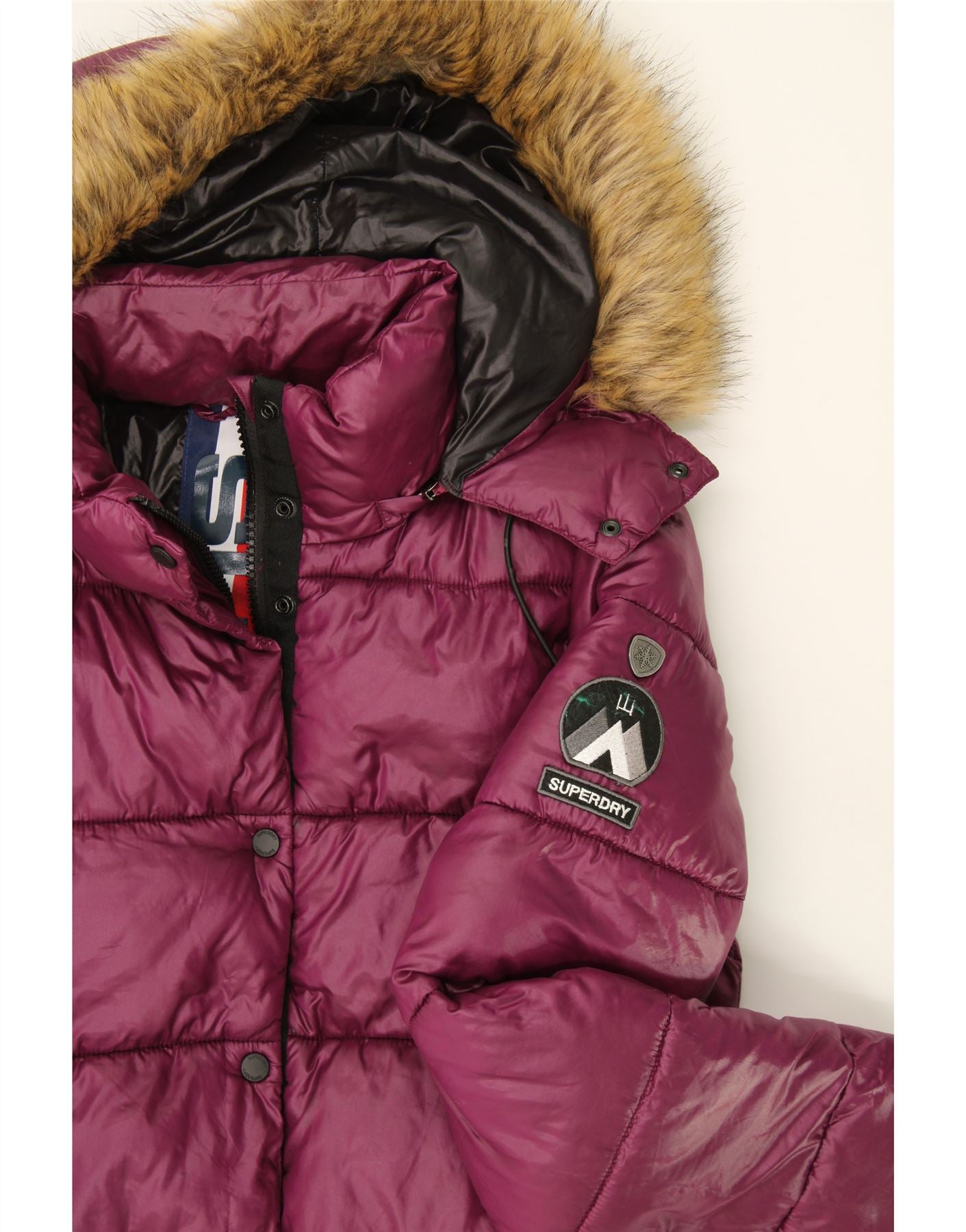 SUPERDRY Womens Hooded Padded Jacket UK 14 Large Burgundy Nylon