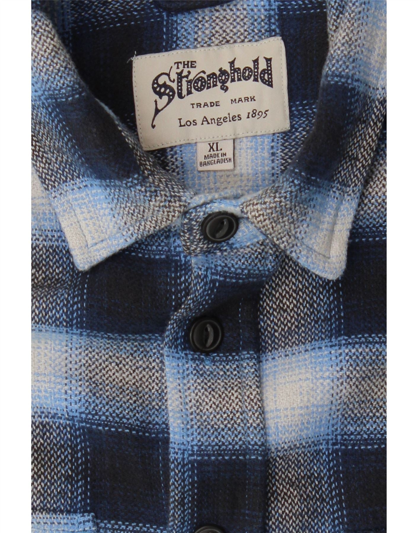THE STRONGHOLD Mens Flannel Shirt XL Navy Blue Check Cotton