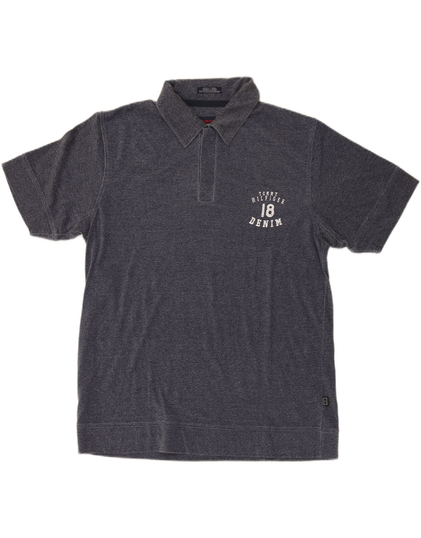TOMMY HILFIGER Mens Polo Shirt Medium Navy Blue Cotton