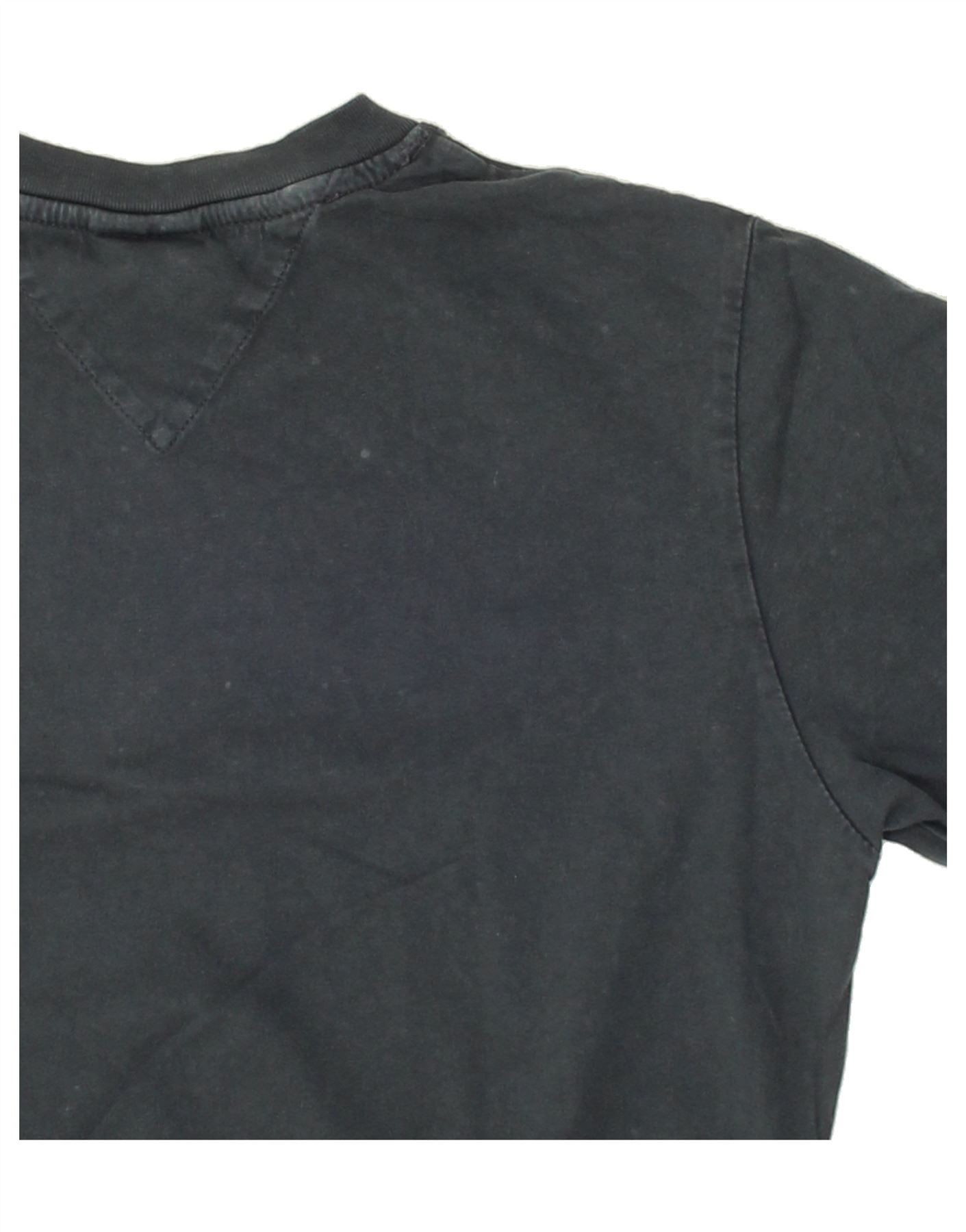 TOMMY HILFIGER Womens Oversized Crop Graphic T-Shirt Top UK 6 XS Navy Blue