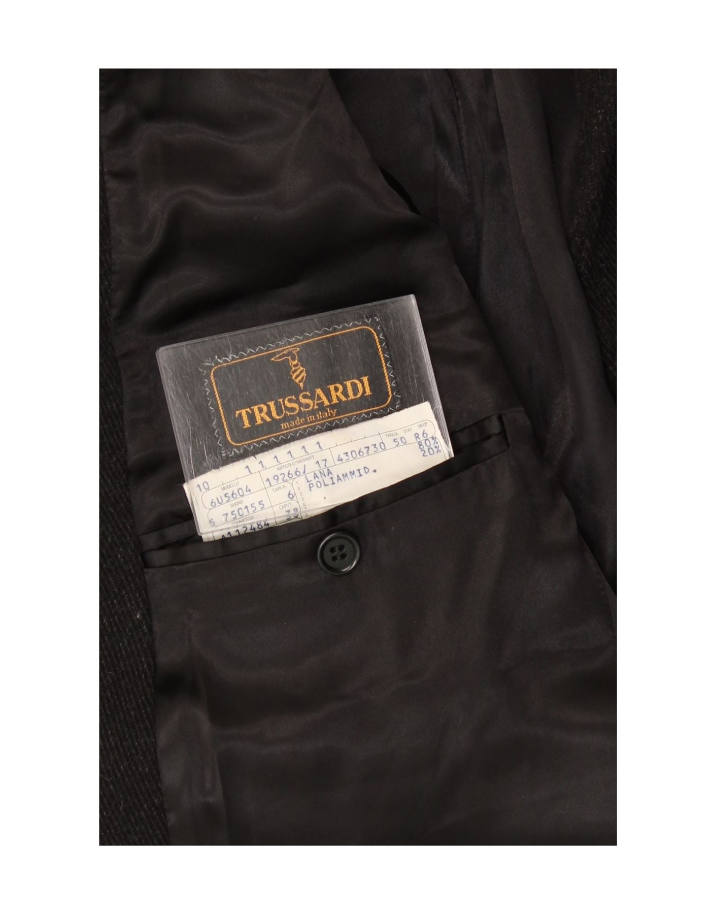 - AI Description: This Trussardi men’s overcoat is crafted from a luxurious black wool blend, offering warmth and a refined texture. It features a classic collared neckline and a neat button-up front. Long sleeves provide elegant coverage for sophisticated wear. The regular fit ensures comfortable layering over suiting or casual attire. Practical pockets and a full lining add to its classic structure and timeless appeal, making it an essential outerwear piece.