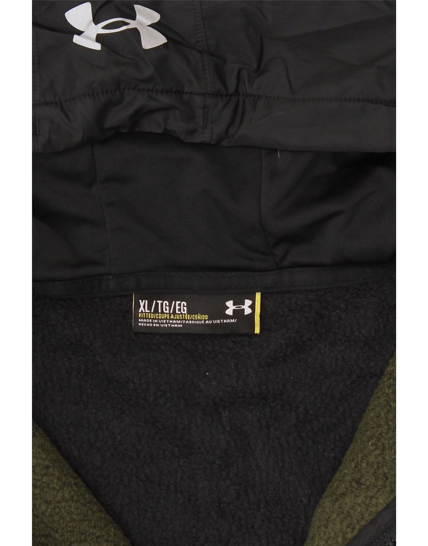 UNDER ARMOUR Mens Fitted Zip Hoodie Sweater XL Green Colourblock Cotton
