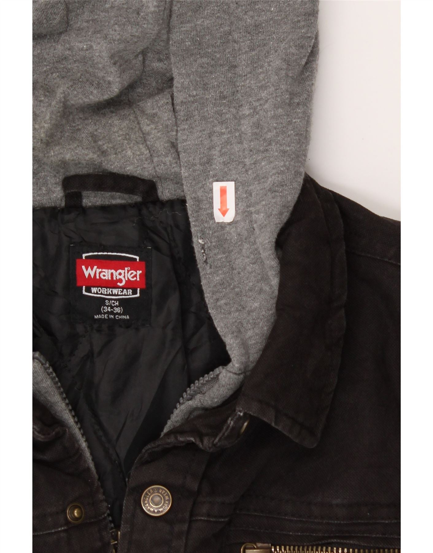 WRANGLER Mens Hooded Denim Jacket UK 36 Small Black Cotton