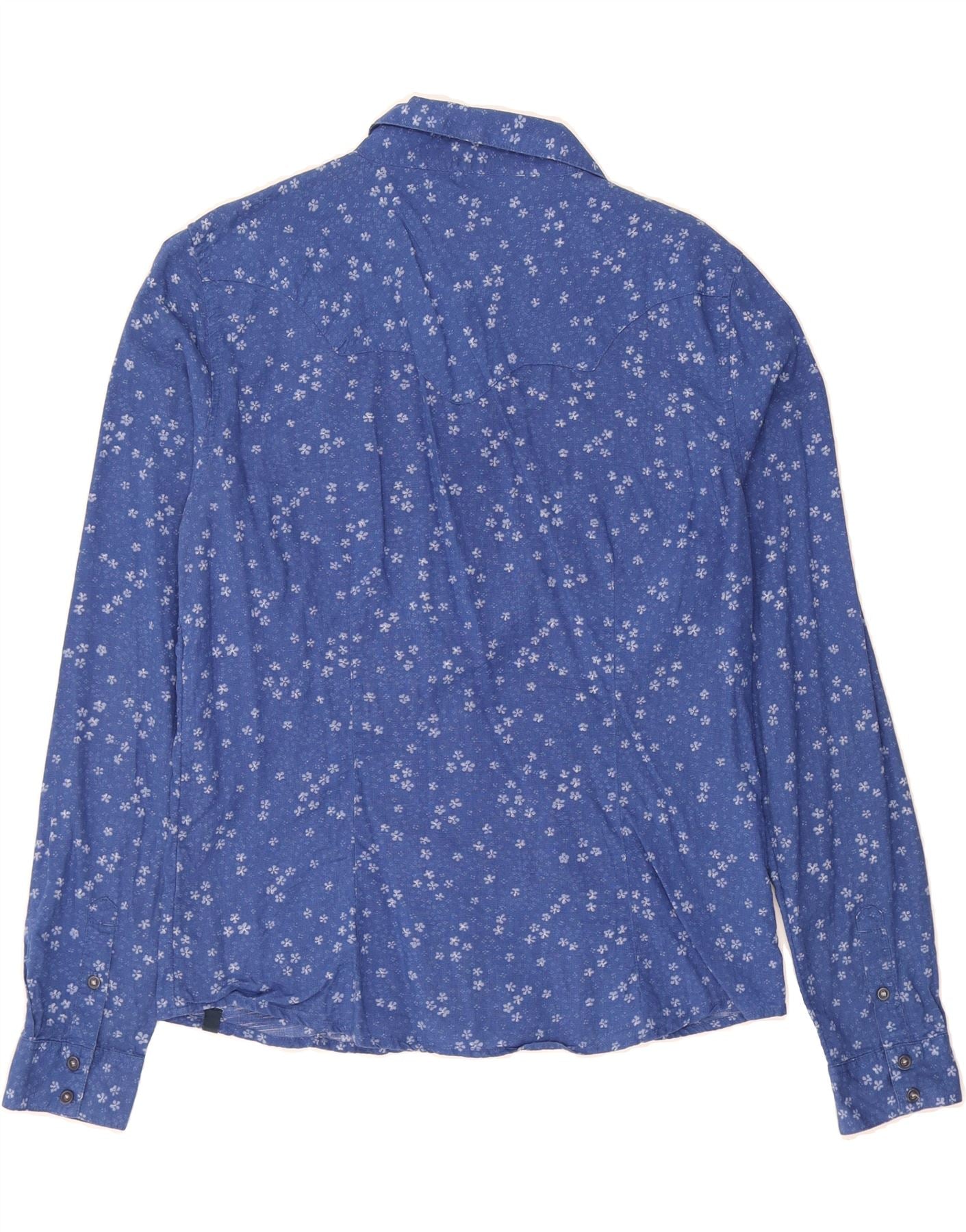WRANGLER Womens Regular Shirt UK 14 Large Blue Floral Cotton