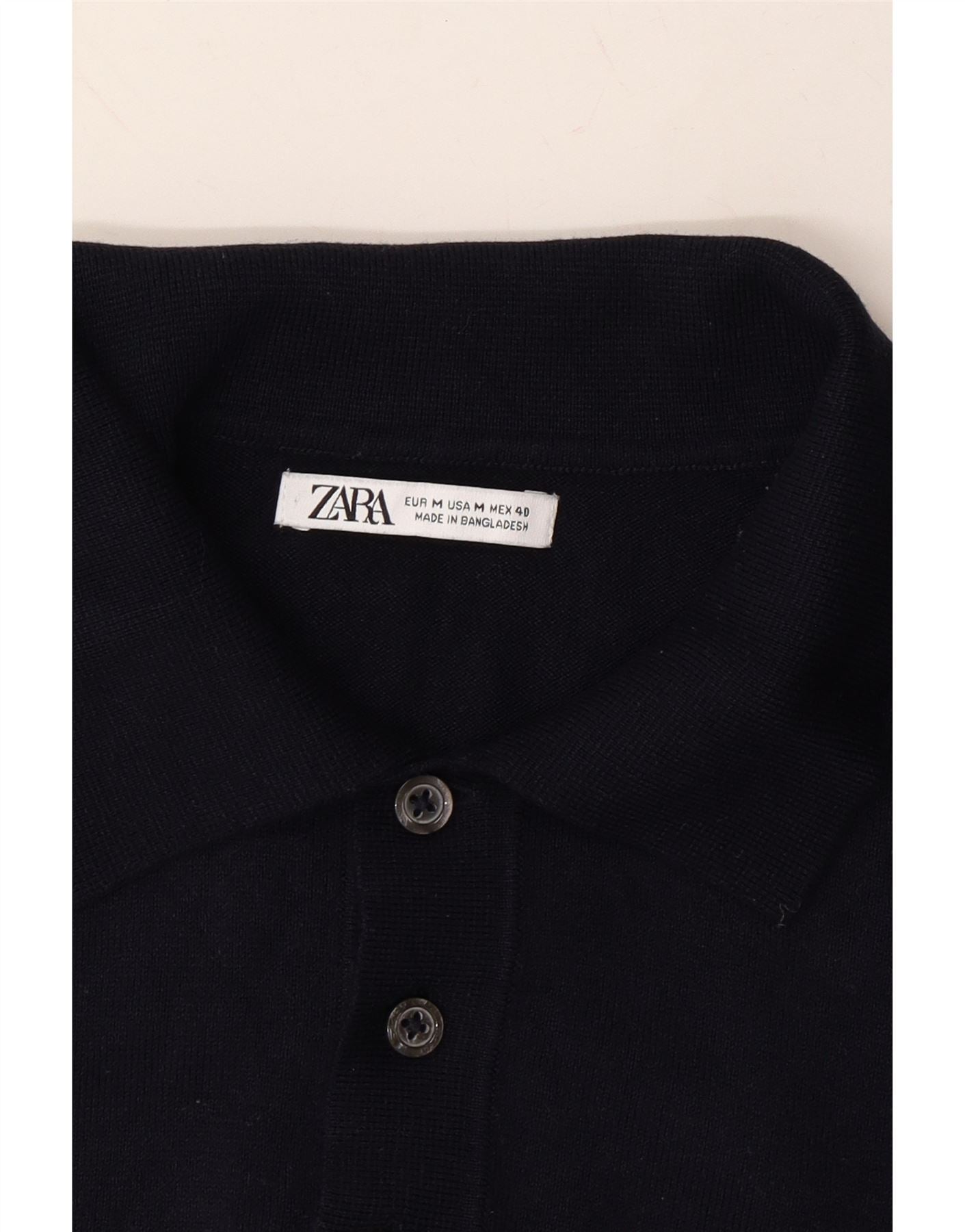ZARA Mens Short Sleeve Polo Neck Jumper Sweater Medium Navy Blue Viscose