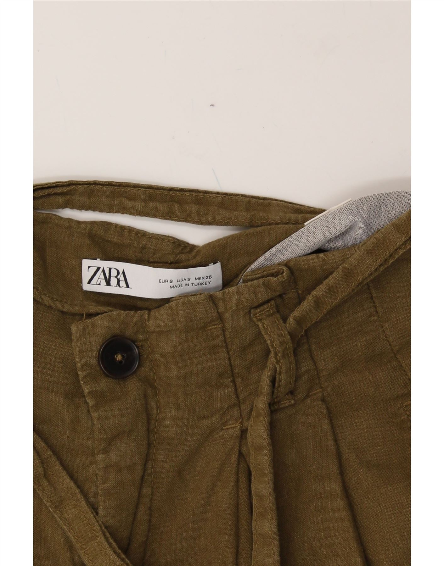 ZARA Womens High Waist Pegged Cargo Trousers W26 L26 Khaki Linen