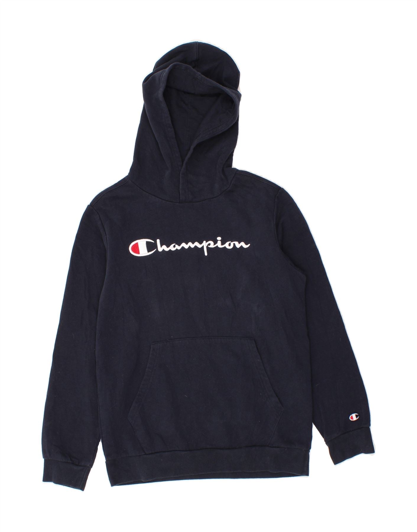 CHAMPION Boys Graphic Hoodie Jumper 13-14 Years XL Navy Blue