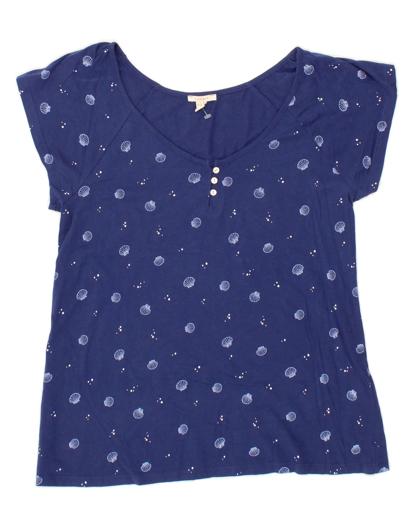 ESPRIT Womens Abstract Pattern T-Shirt Top UK 14 Medium Blue Cotton