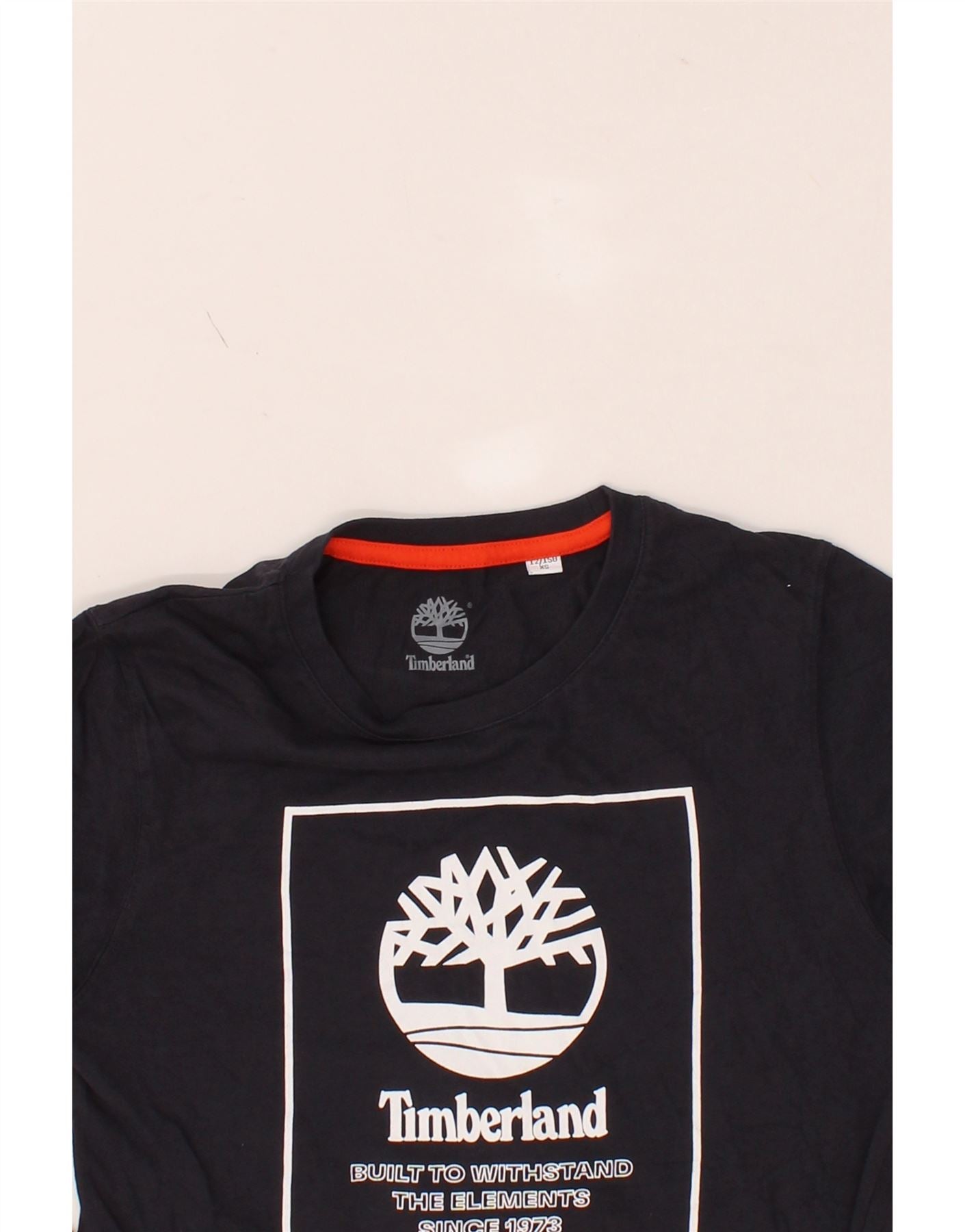 TIMBERLAND Boys Graphic Top Long Sleeve 11-12 Years XS Navy Blue Cotton