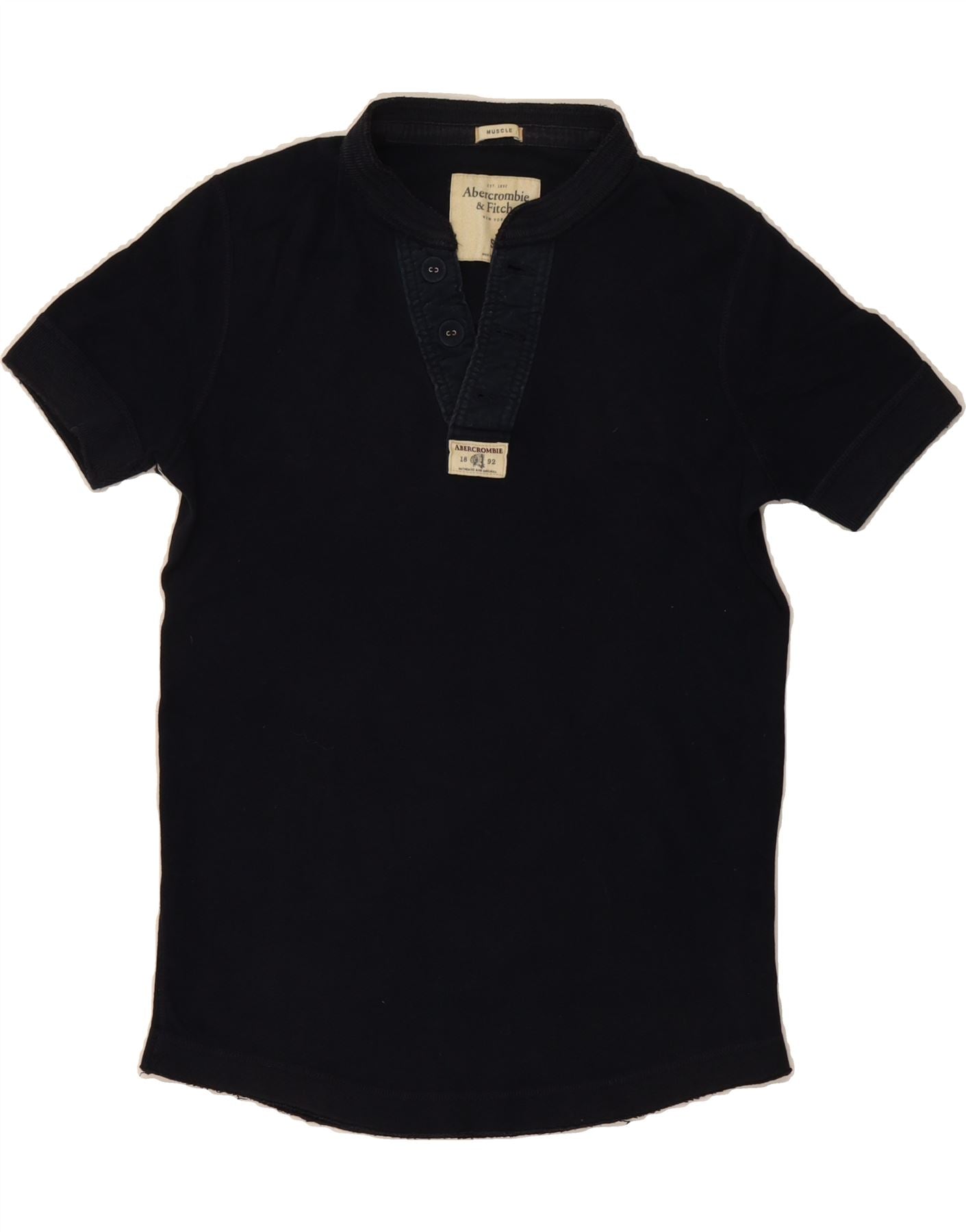 ABERCROMBIE & FITCH Mens Muscle Polo Shirt Small Navy Blue Cotton