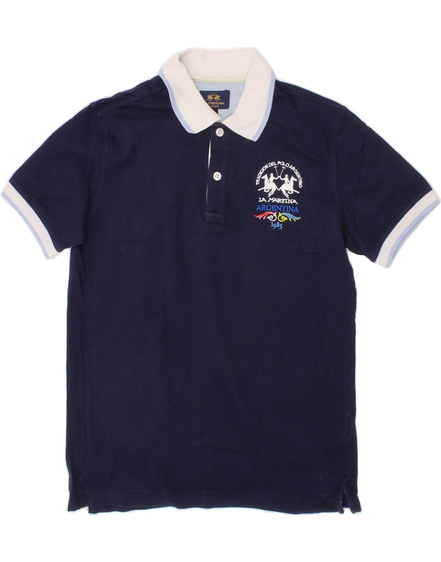LA MARTINA Boys Graphic Rugby Polo Shirt 9-10 Years Navy Blue Cotton