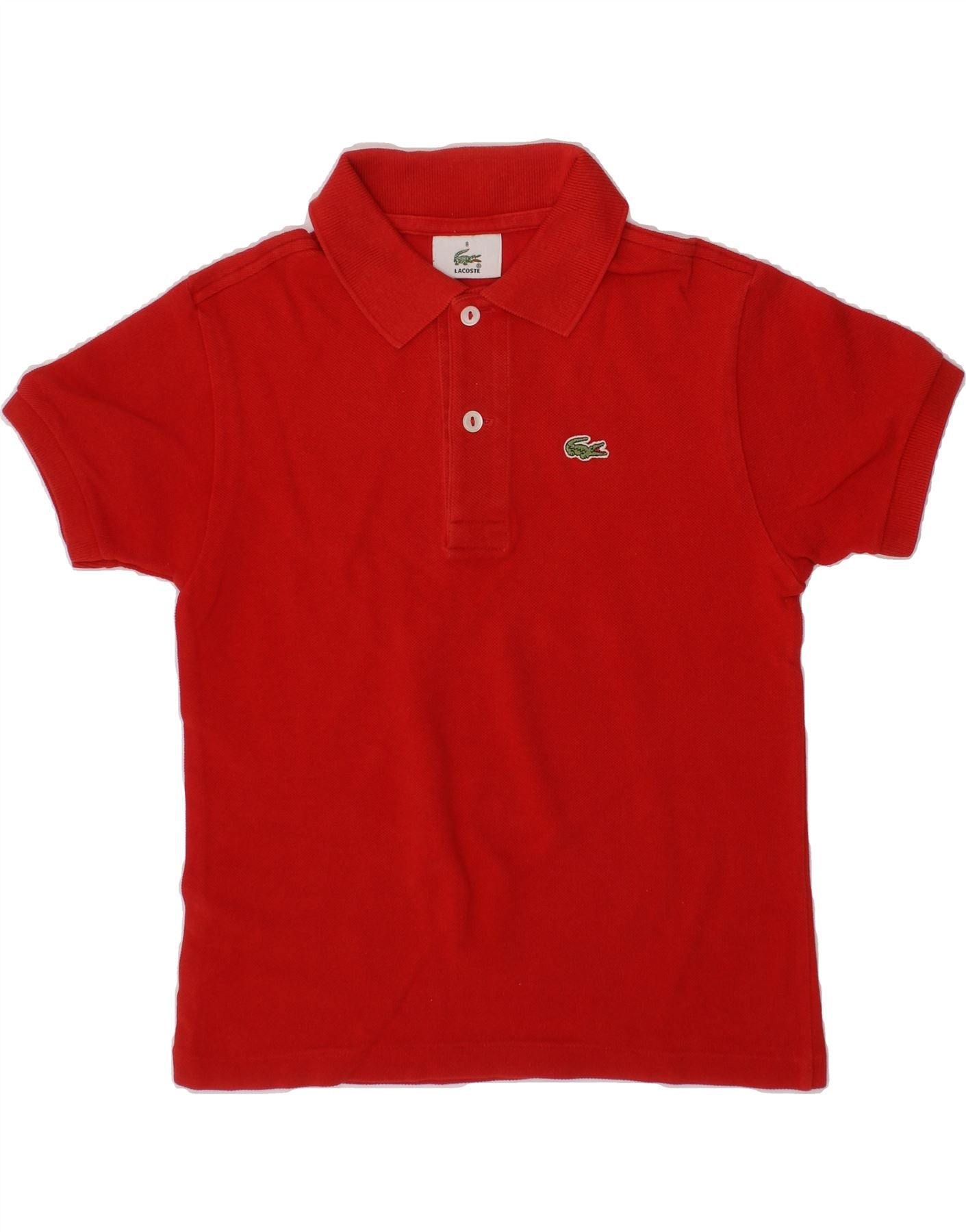 - AI Description: This classic red Lacoste polo shirt is perfect for boys. Crafted from comfortable knit cotton, it features a regular fit, short sleeves, and a collared neckline with a button closure. The shirt is accented with the iconic Lacoste logo. This pre-owned polo is in excellent condition and is labelled as size 8. A stylish and versatile addition to any young gentleman's wardrobe.