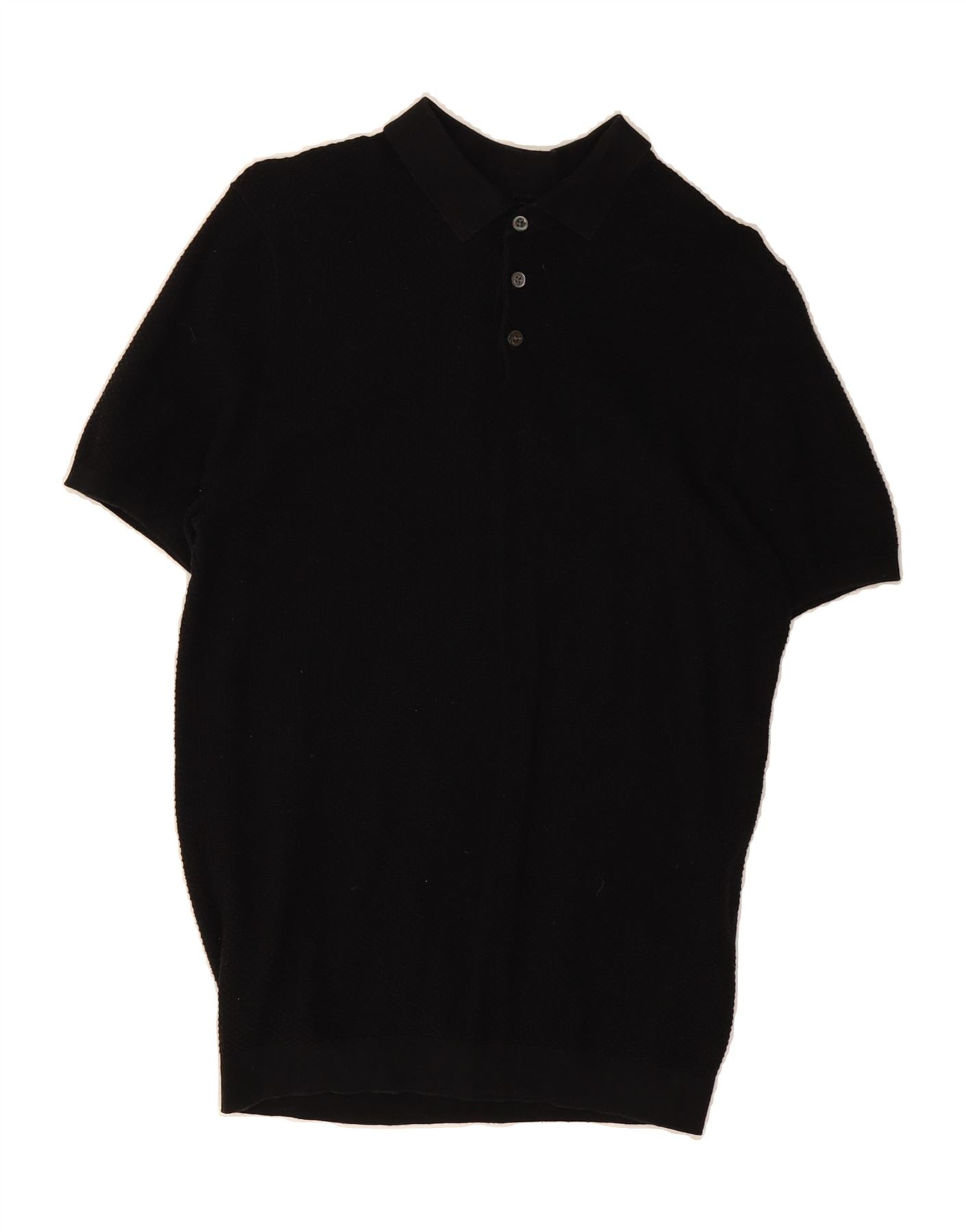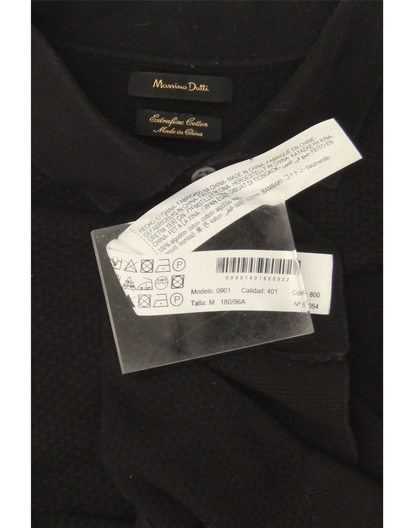 MASSIMO DUTTI Mens Polo Shirt Medium Black Cotton