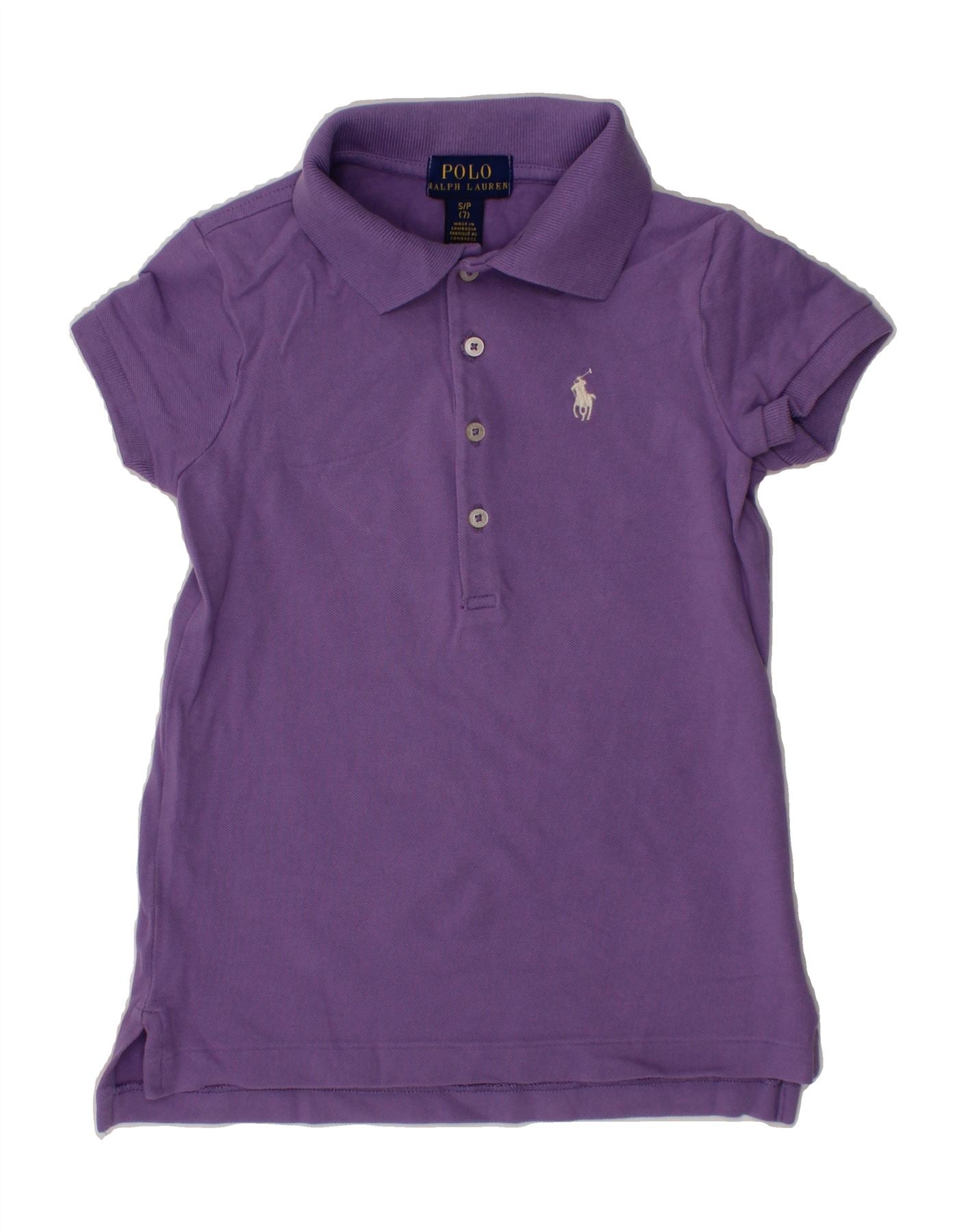 POLO RALPH LAUREN Girls Polo Shirt 6-7 Years Small Purple Cotton