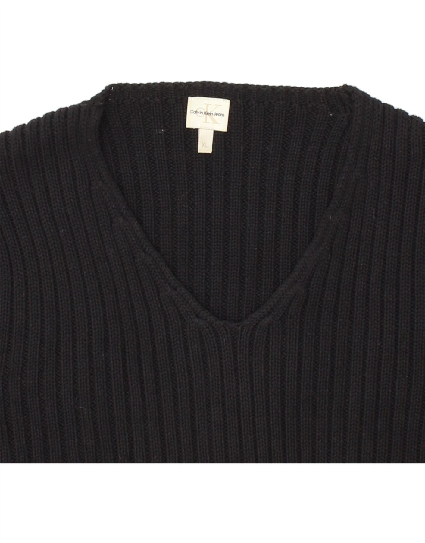 CALVIN KLEIN Womens V-Neck Jumper Sweater UK 18 XL Black Cotton
