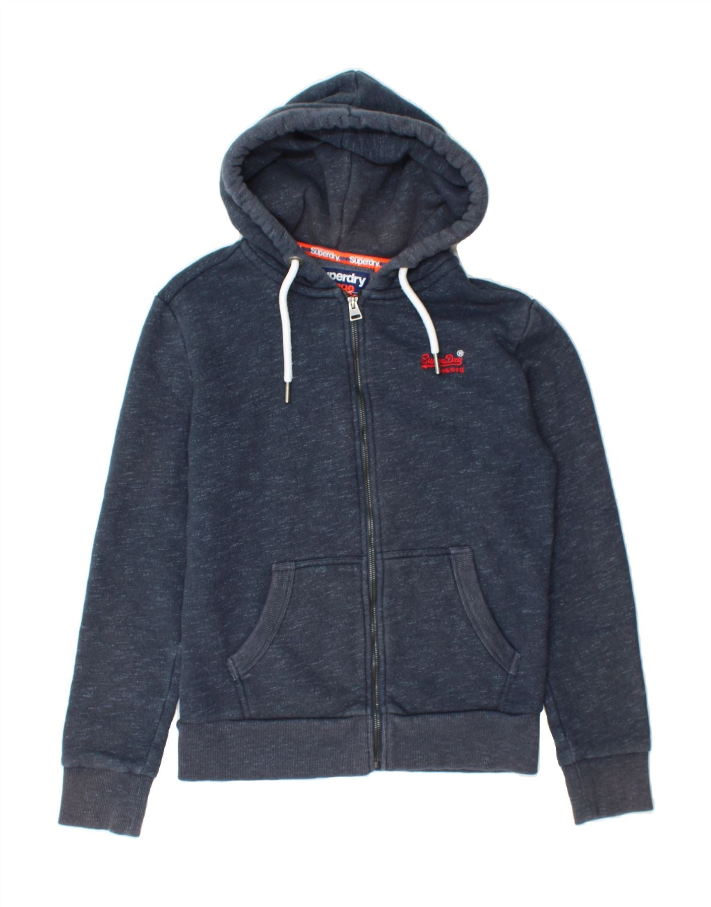 SUPERDRY Mens Zip Hoodie Sweater Small Navy Blue Flecked Cotton