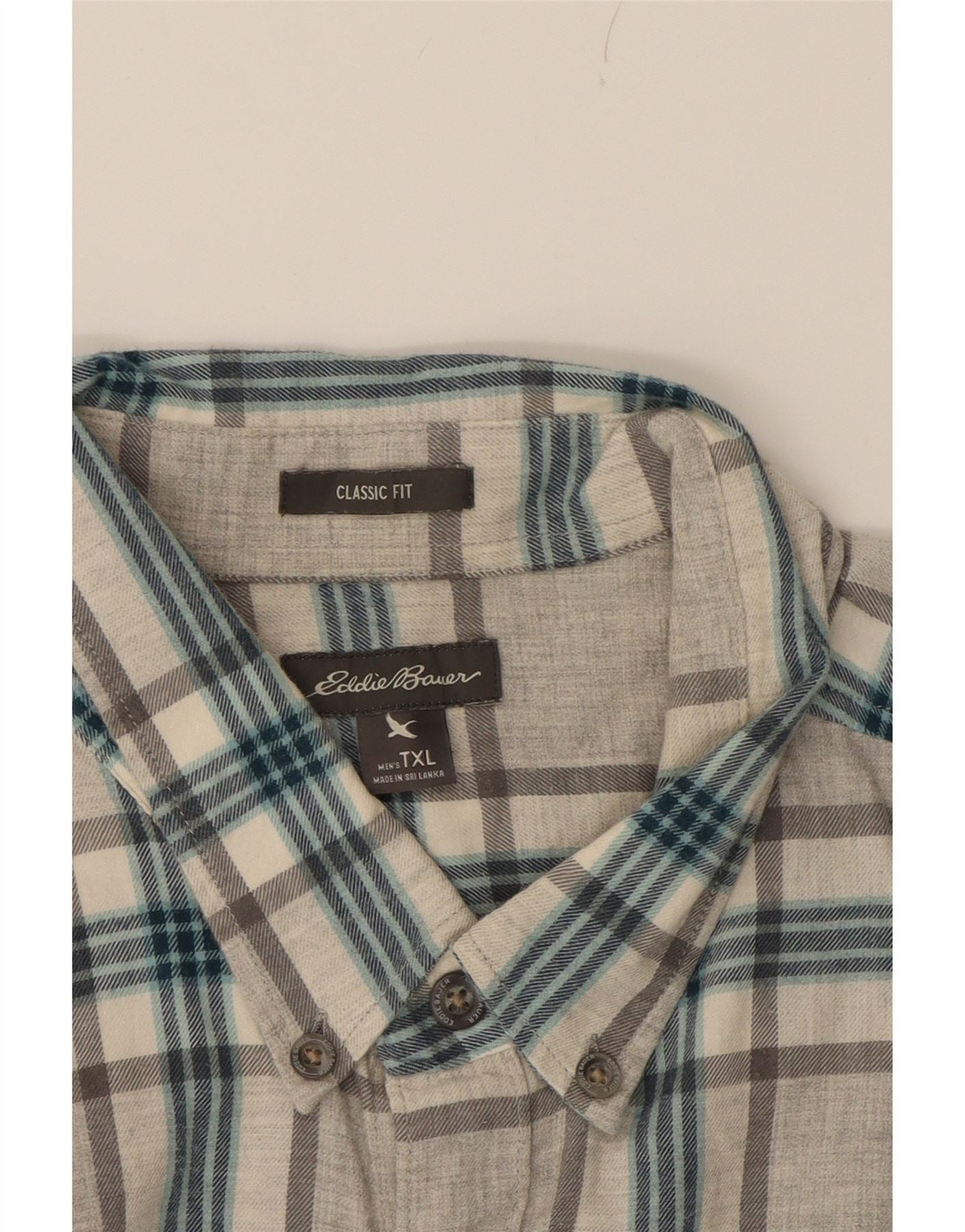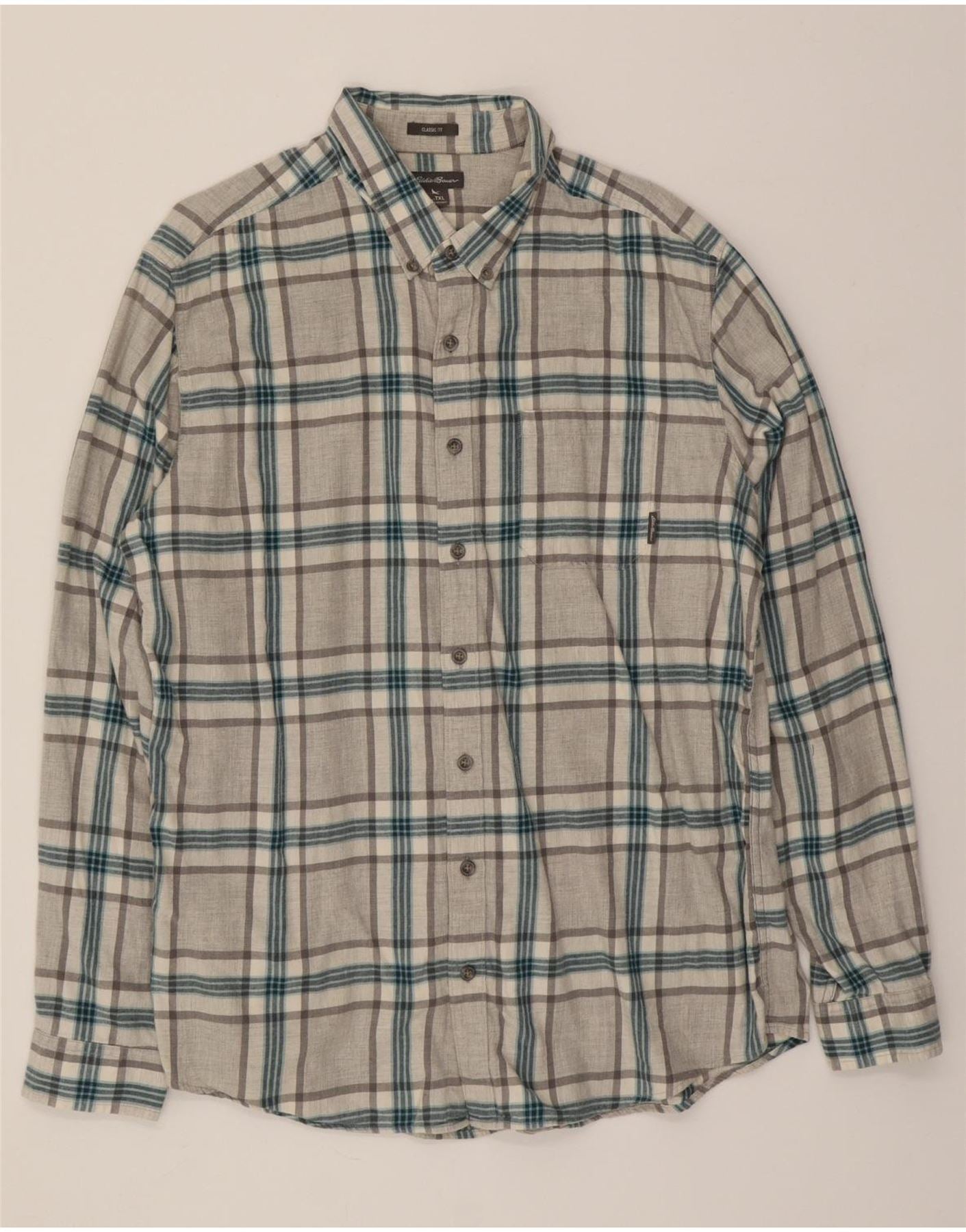 EDDIE BAUER Mens Tall Classic Fit Flannel Shirt XL Grey Check Cotton