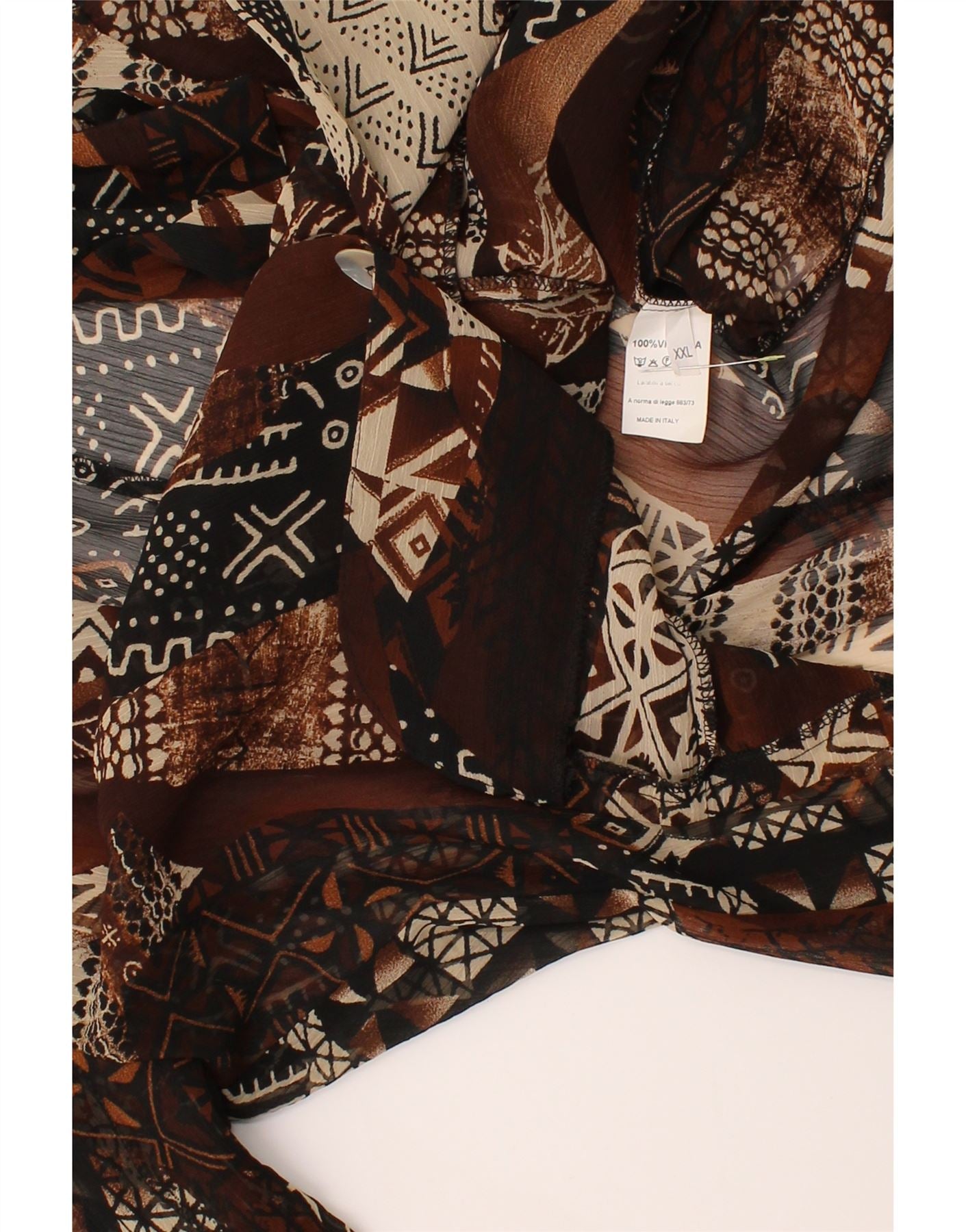 VINTAGE Womens See Through Shirt Blouse UK 20 2XL Brown Geometric