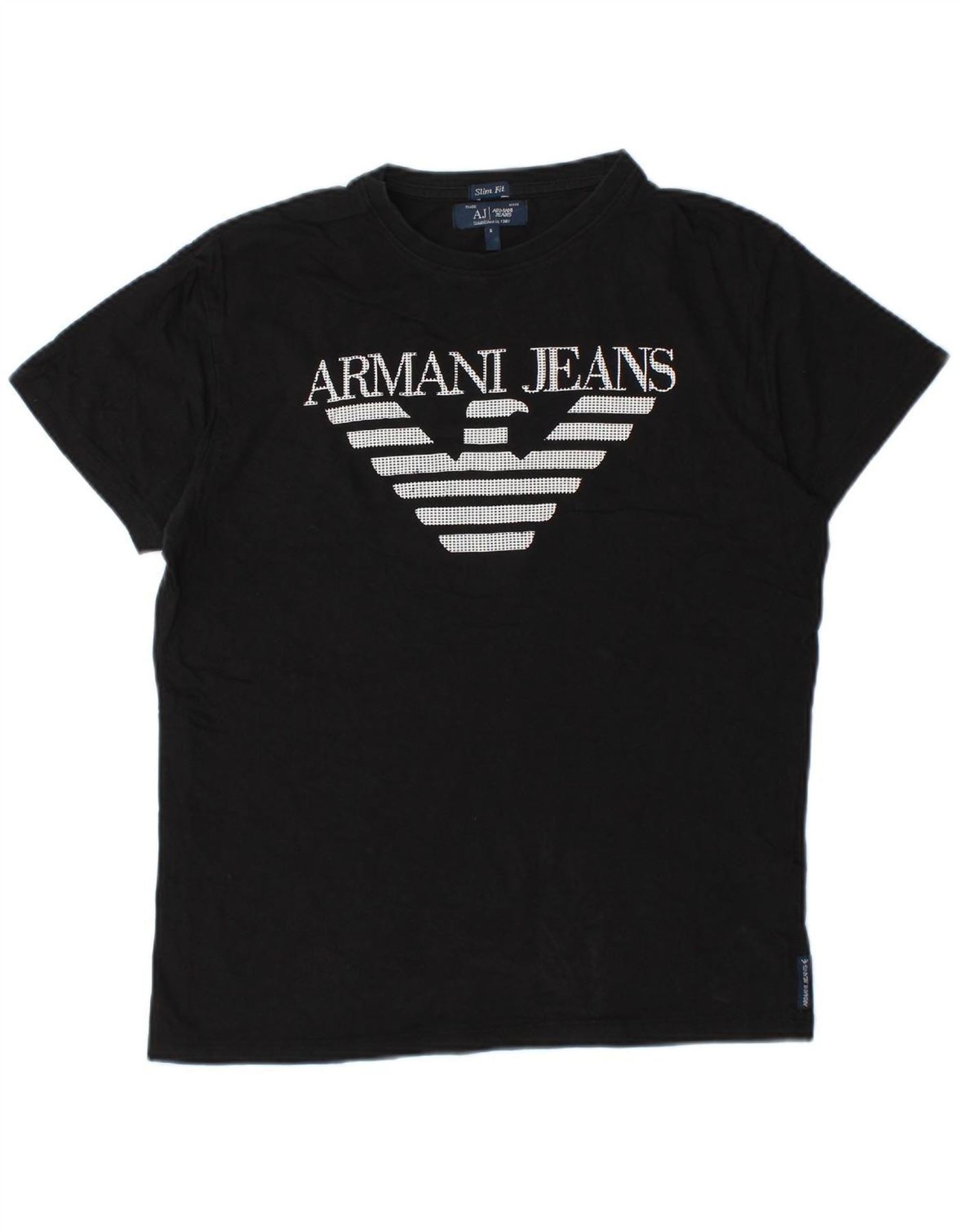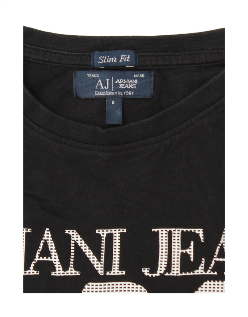 ARMANI JEANS Mens Slim Fit Graphic T-Shirt Top Small Black Cotton