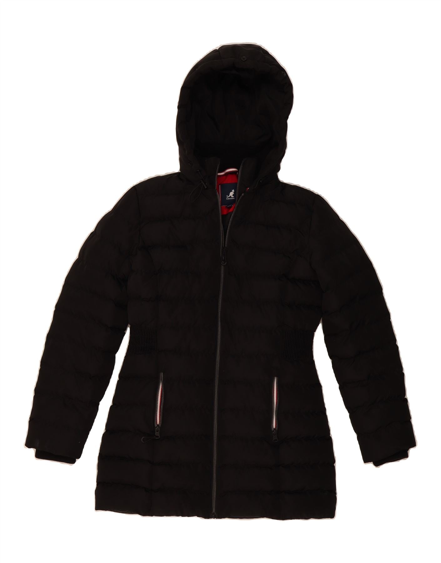 KANGOL Womens Hooded Padded Jacket UK 8 Small Black Polyester
