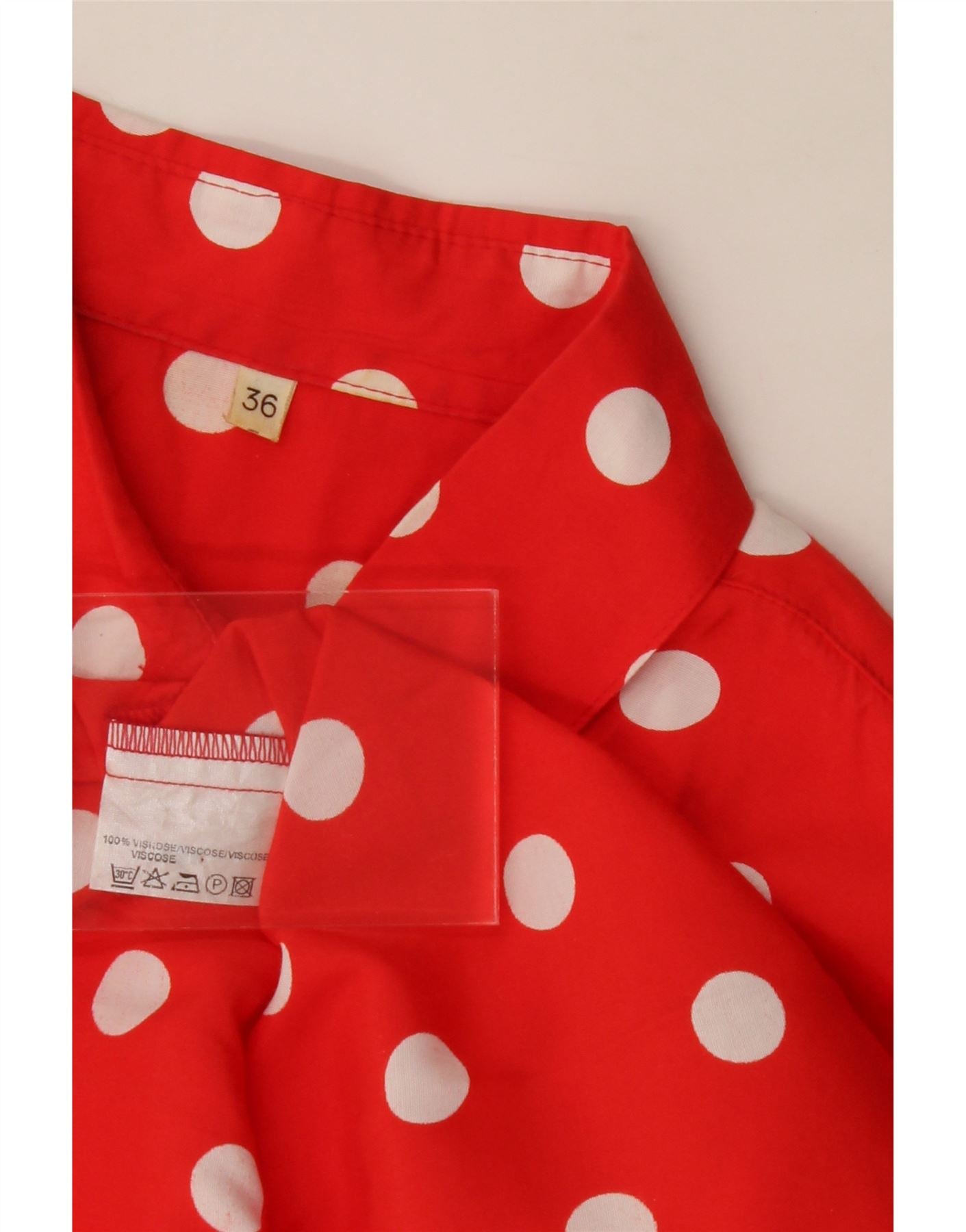 VINTAGE Womens Shirt Dress EU 36 Small Red Polka Dot Viscose